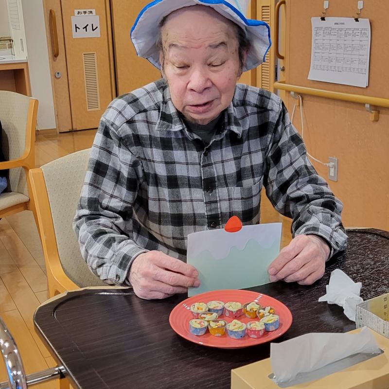 おやつは職員手作りの『パンケーキ』と『いちごサンタ』を美味しくいただきました。