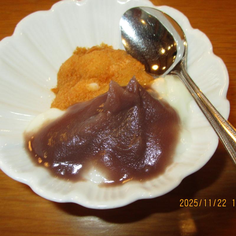 白玉粉に混ぜているのは、夏の残りのかき氷のシロップです