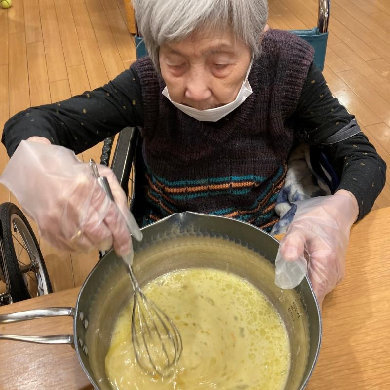ホットケーキミックスを使い、ご入居者様皆さんで