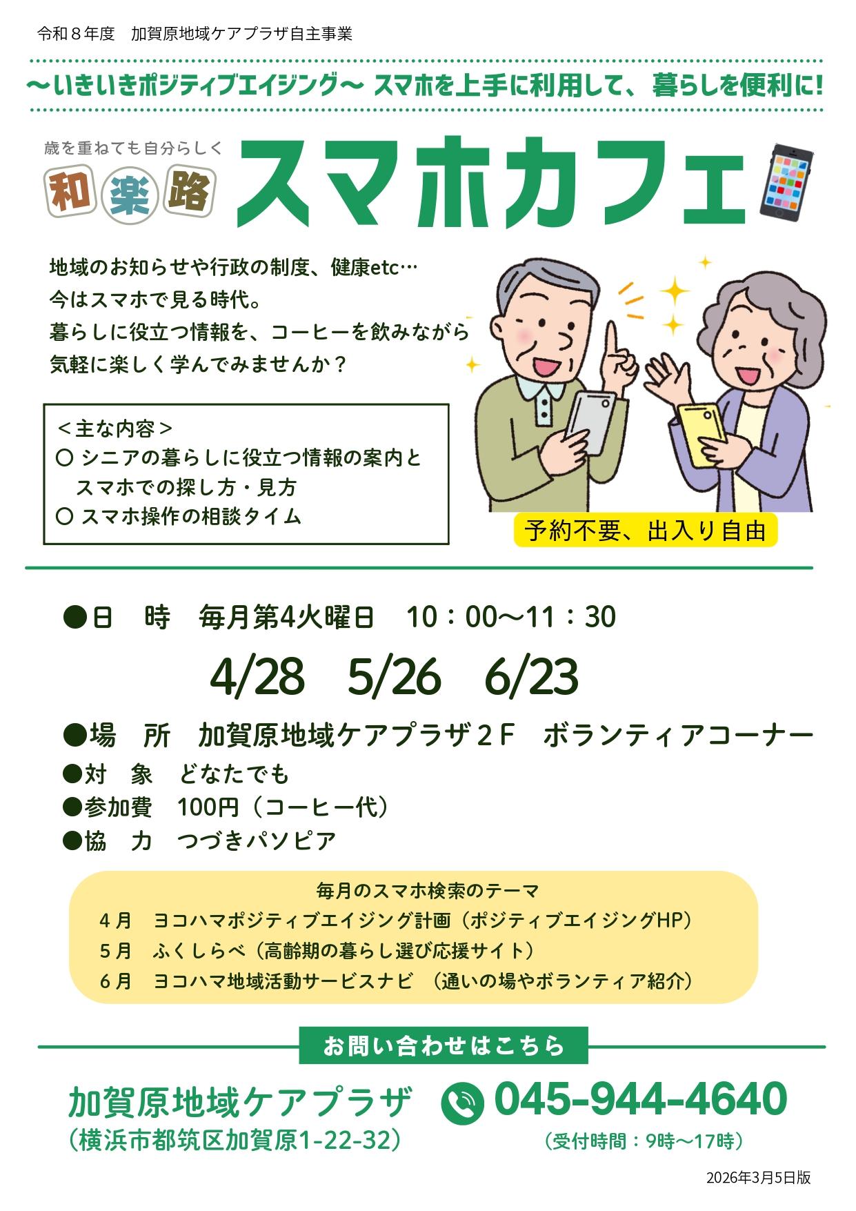 興味のある方、加賀原地域ケアプラザまでお問い合わせください。