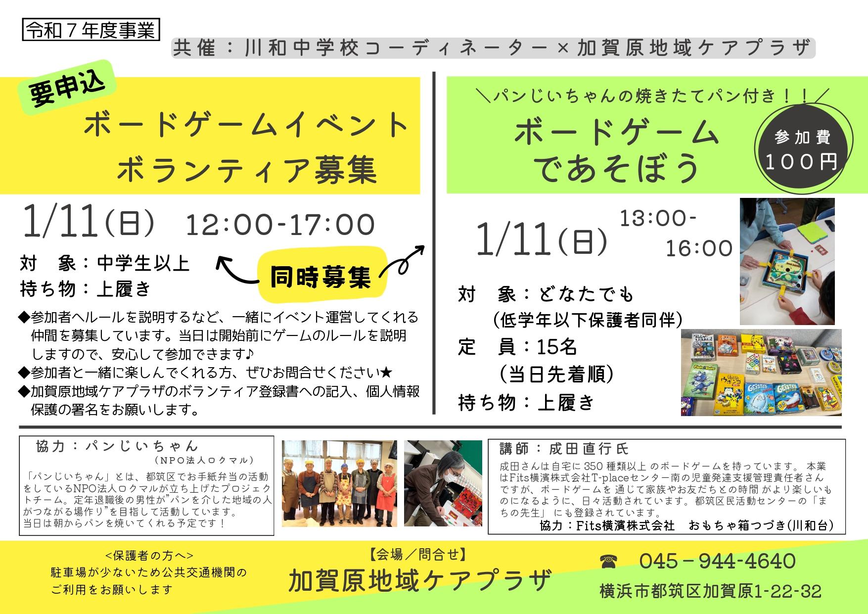 ボードゲームイベントと本イベントのボランティアさんの募集です