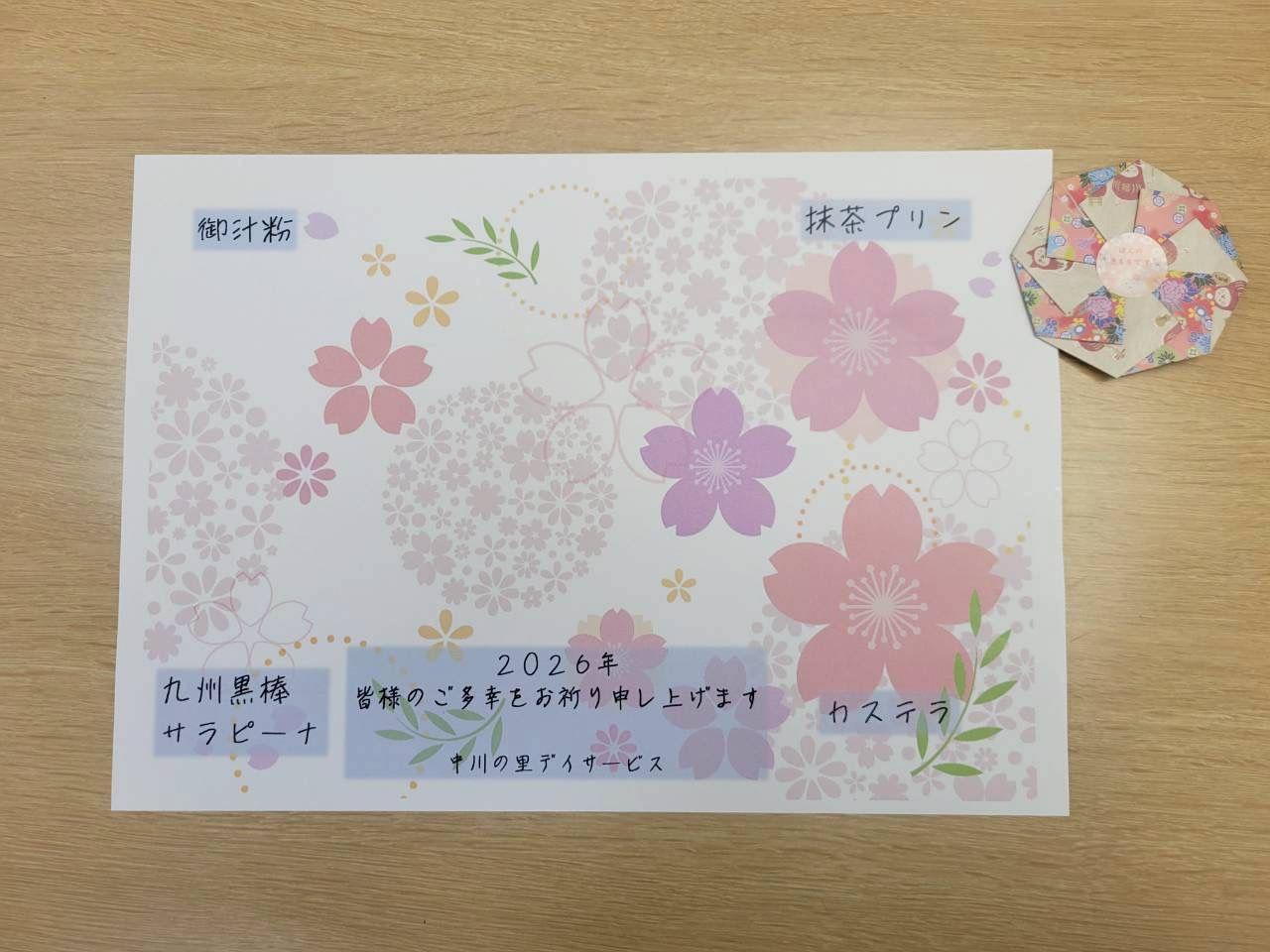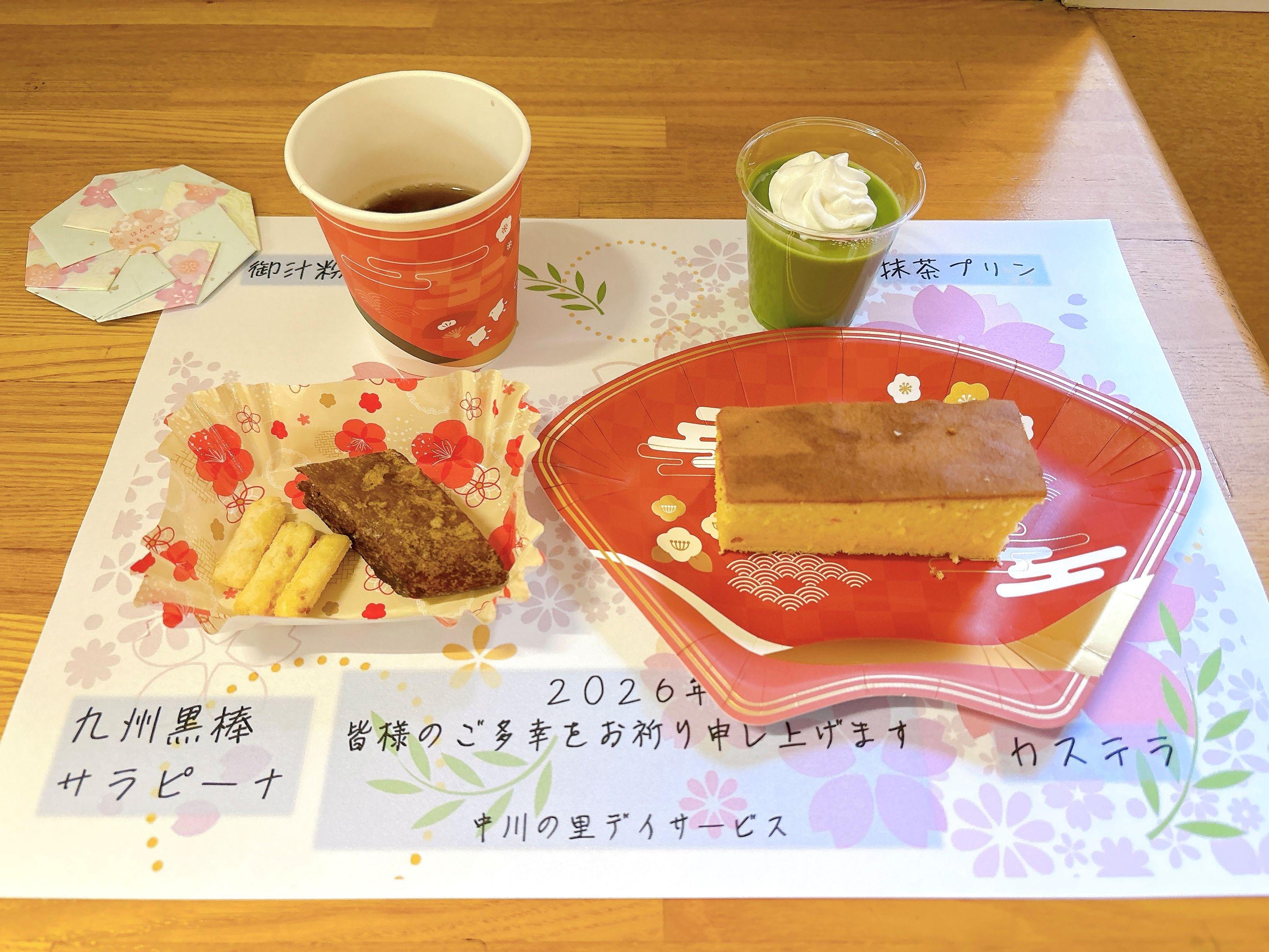 おやつはデイサービススタッフが作成した敷紙と、コースターを添えて提供を行いました!