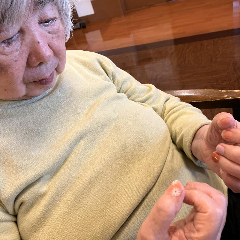 クリスマスということもあり、ネイルシールで指先を華やかにして楽しんでもらいたいと思い、実施しました。