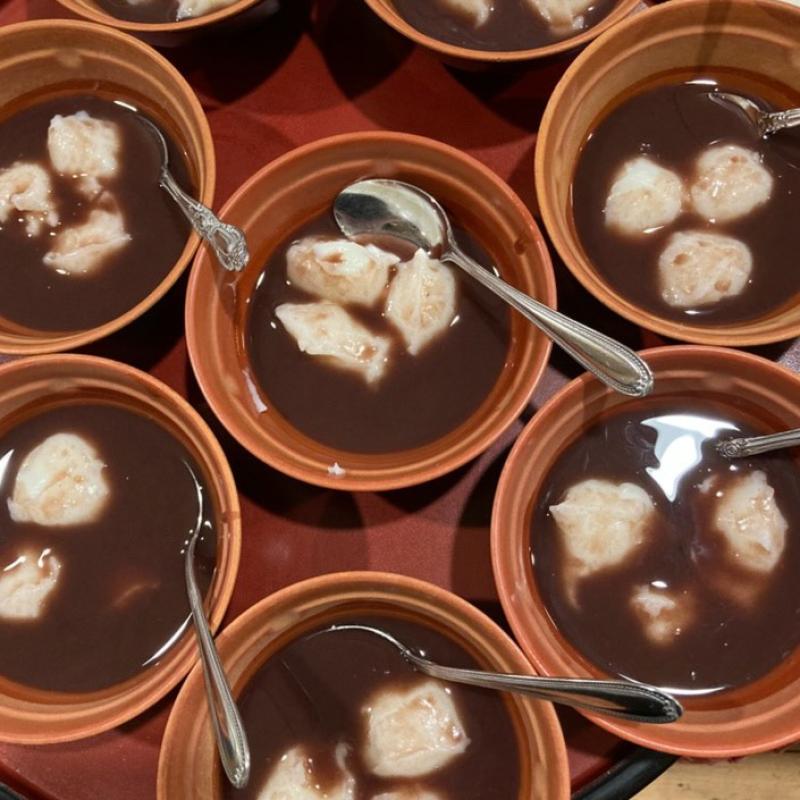 お餅は提供できないので、牛乳と片栗粉で『牛乳餅』を作って『お汁粉』に