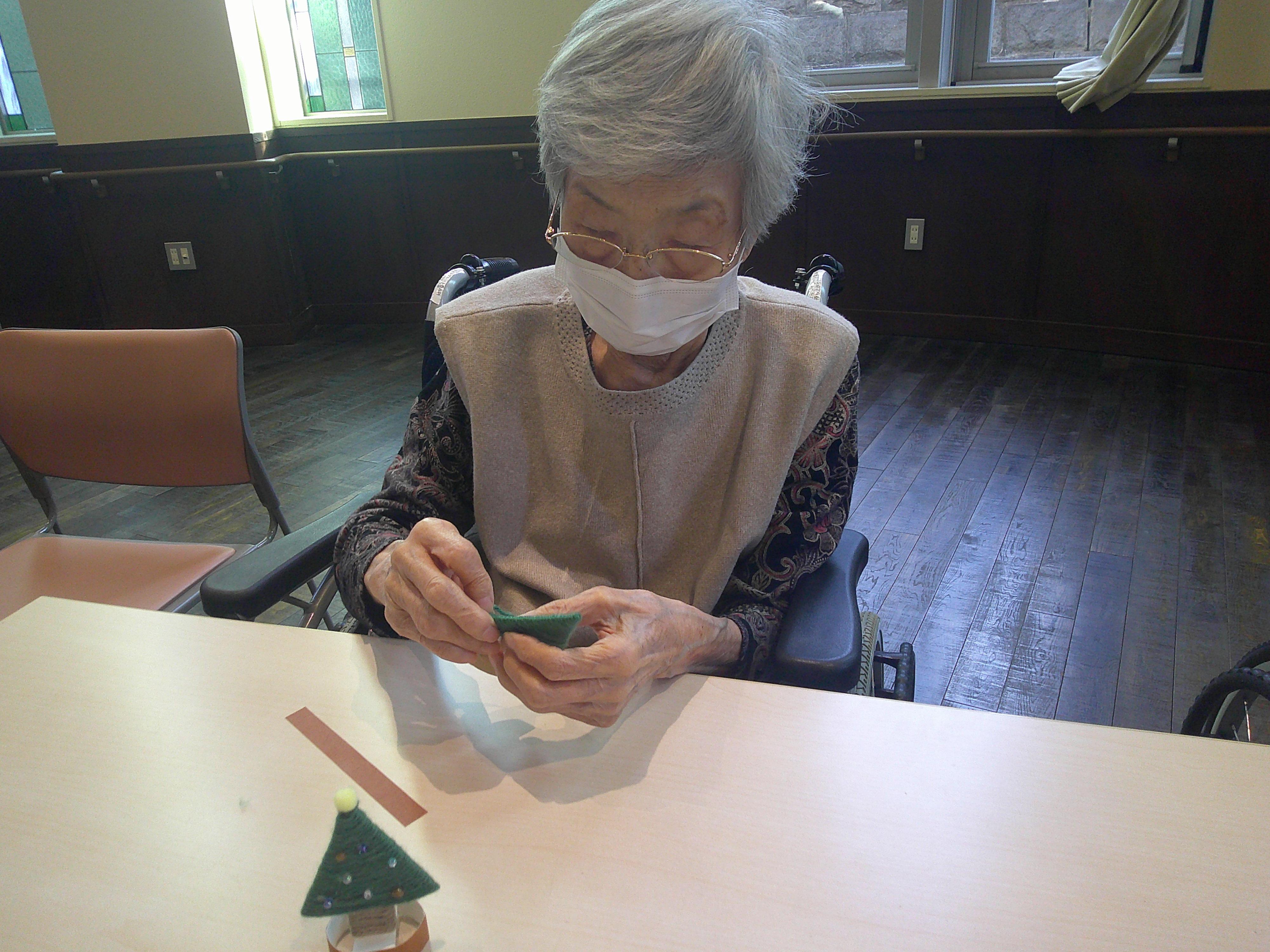 今月のクラフト制作は、クリスマスツリーを作成しました