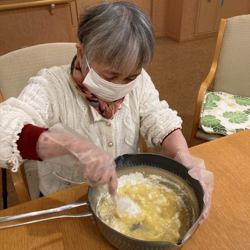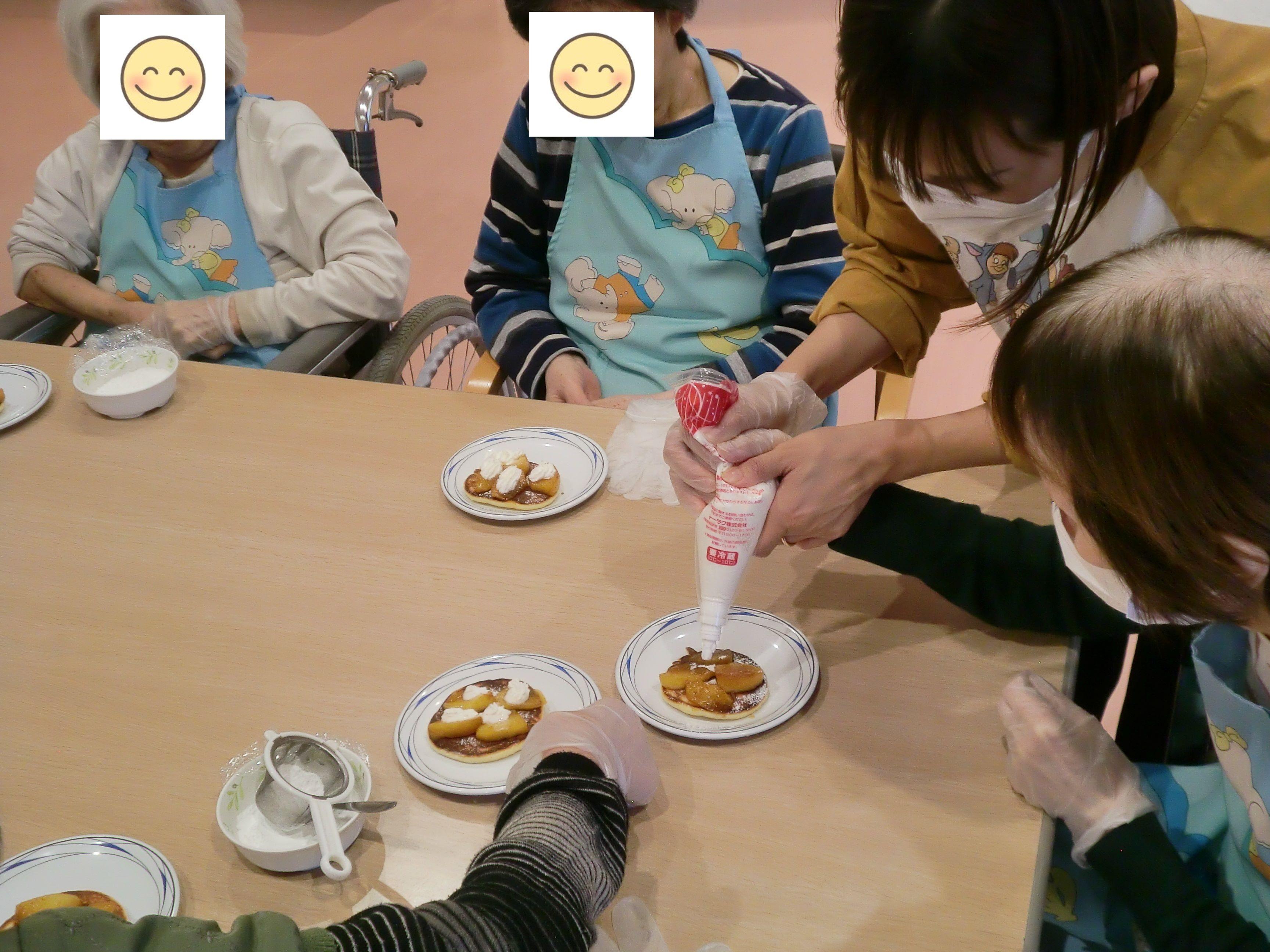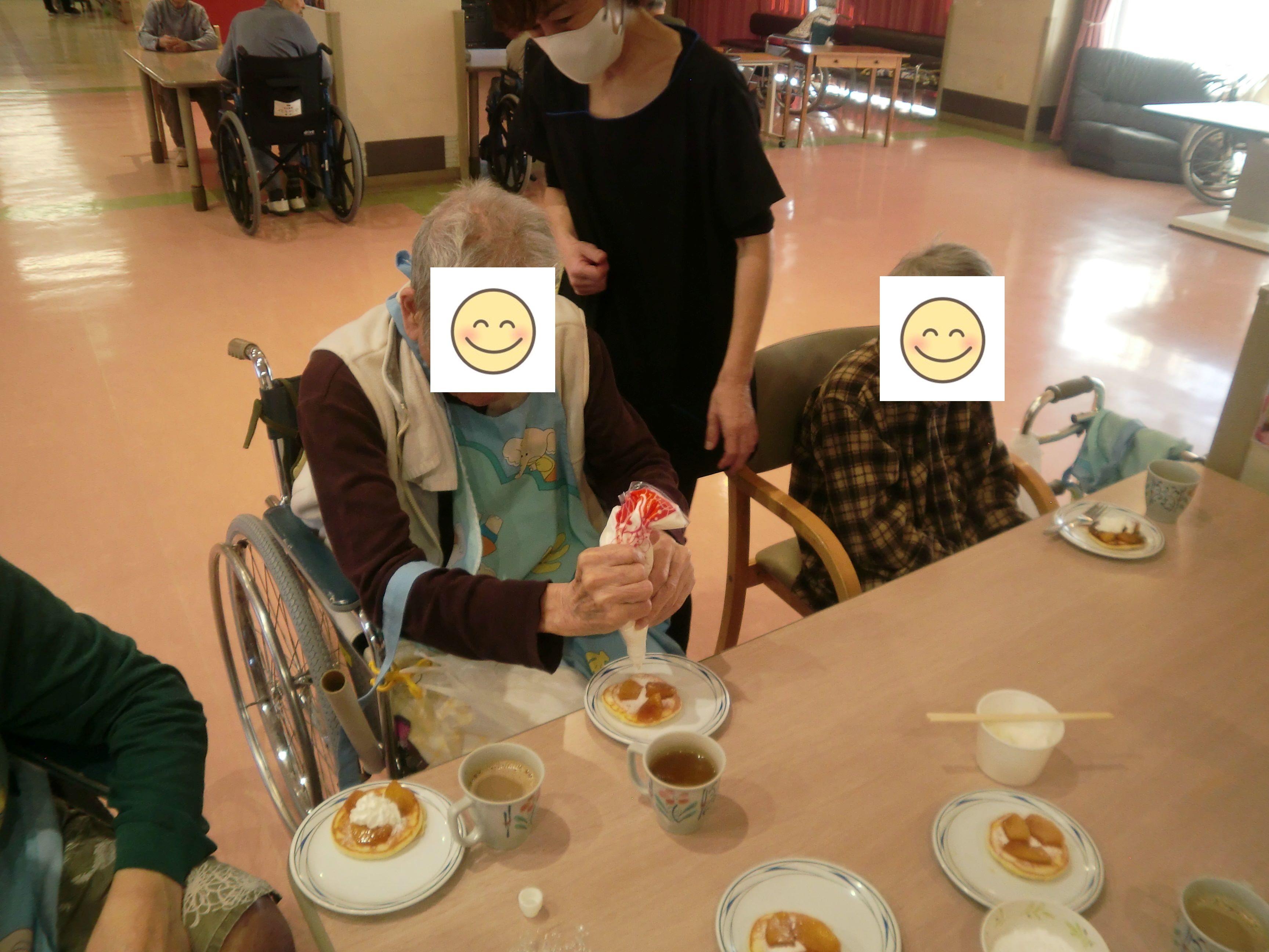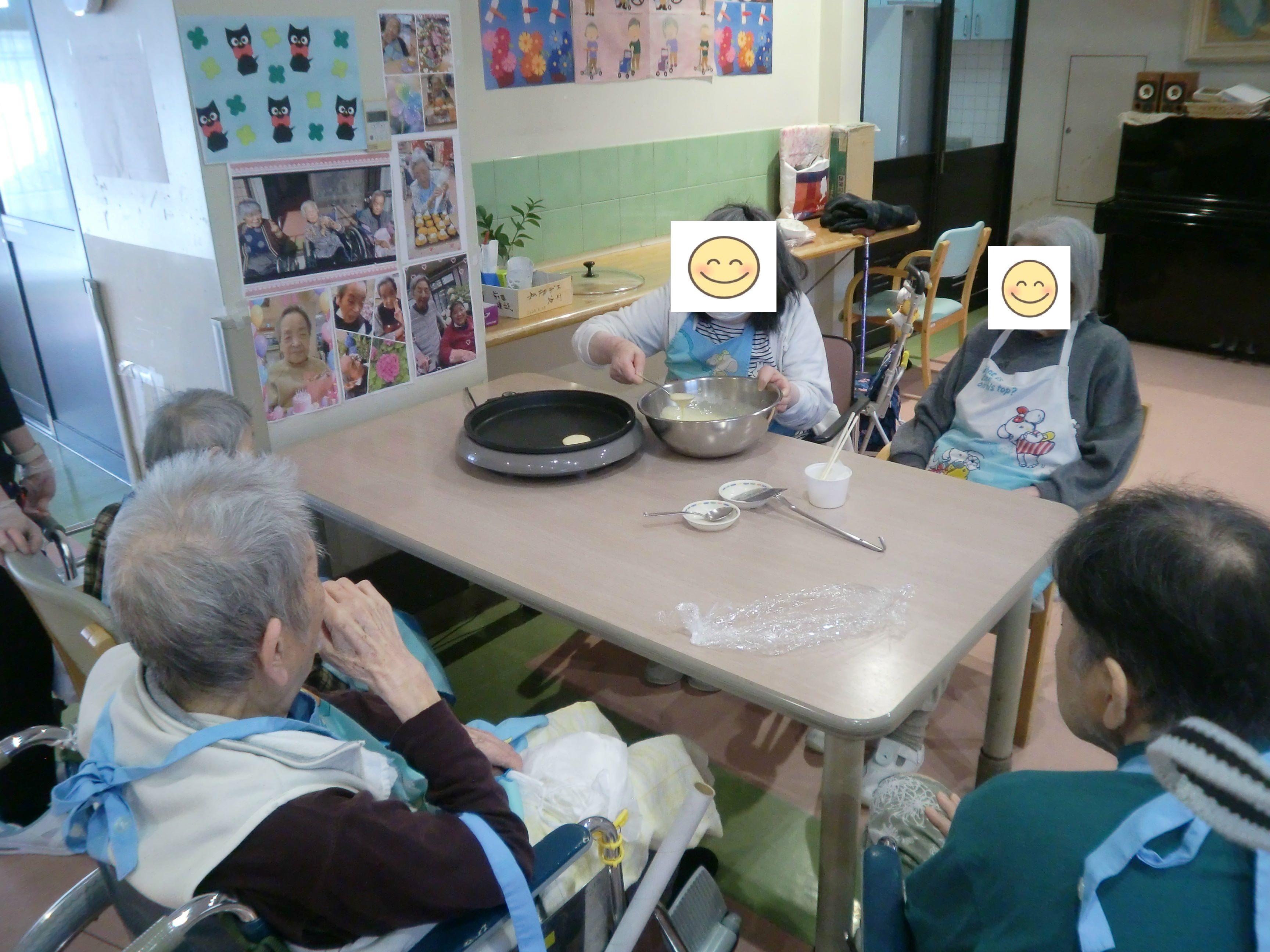 ホットケーキミックスを使い、ご入居者様皆さんで