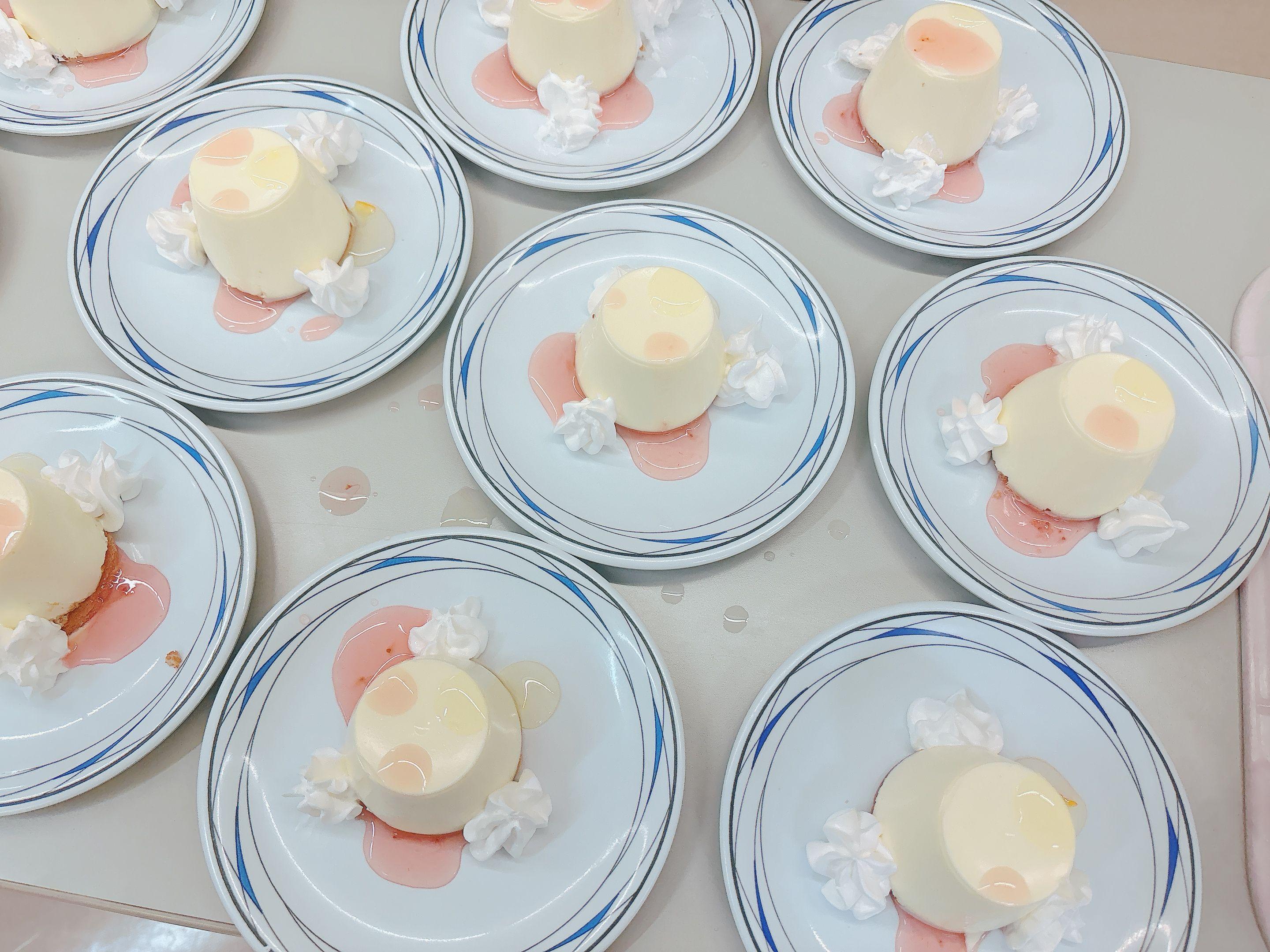 手作りのレアチーズケーキにいちごソースとマーマレードソースを添えてご提供shine