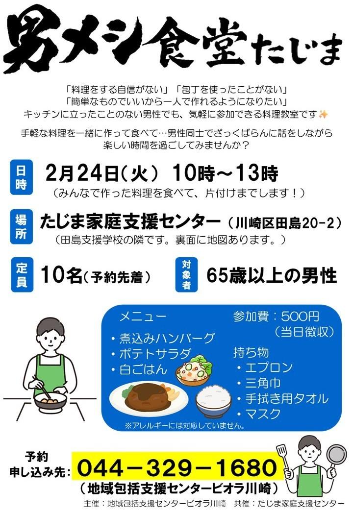 偶数月に定期開催している「男メシ食堂たじま」の第3回を開催します!