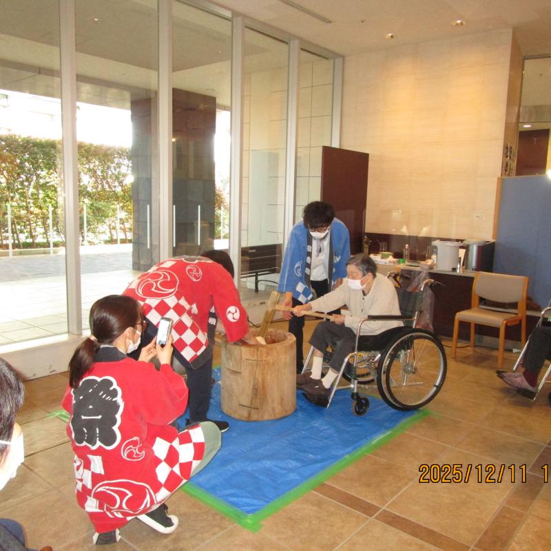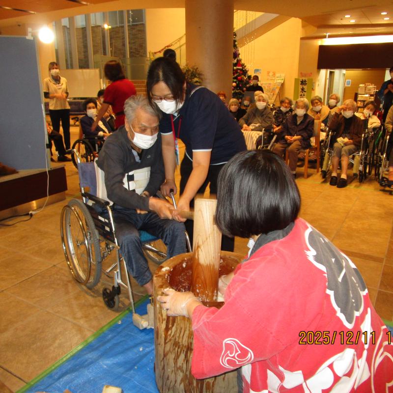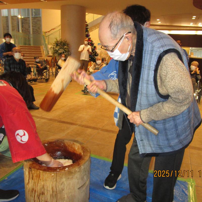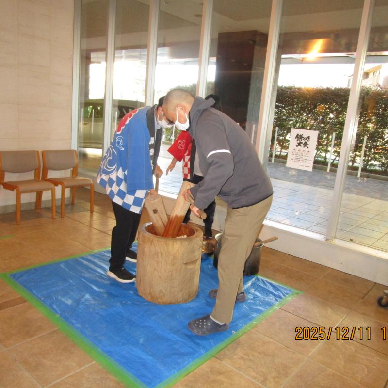 本日、毎年恒例の『餅つき』を1階ホールで行いました。