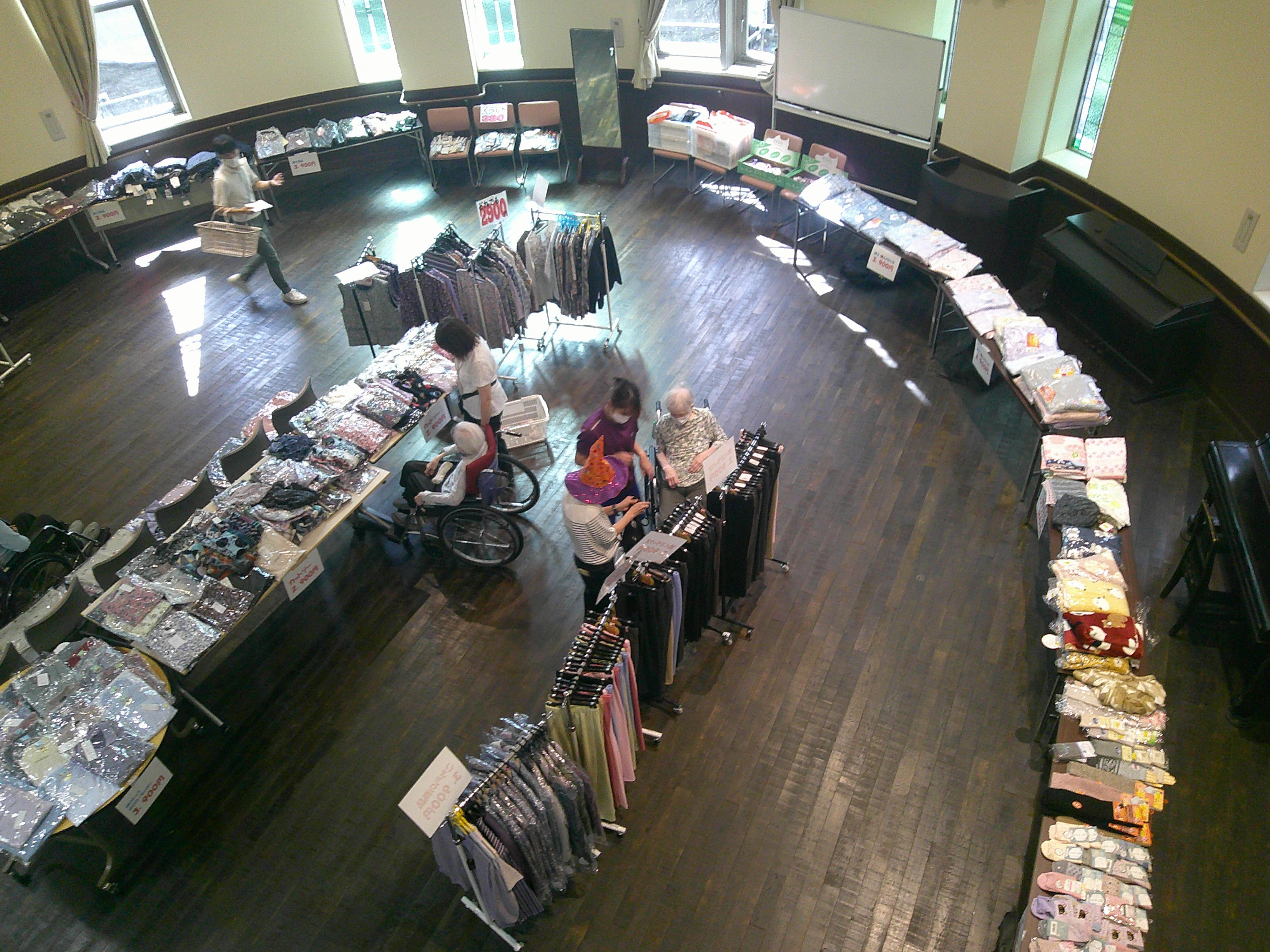 今日は、交流ホールでハピネス洋品店さんが来てくださり、衣類販売がありました