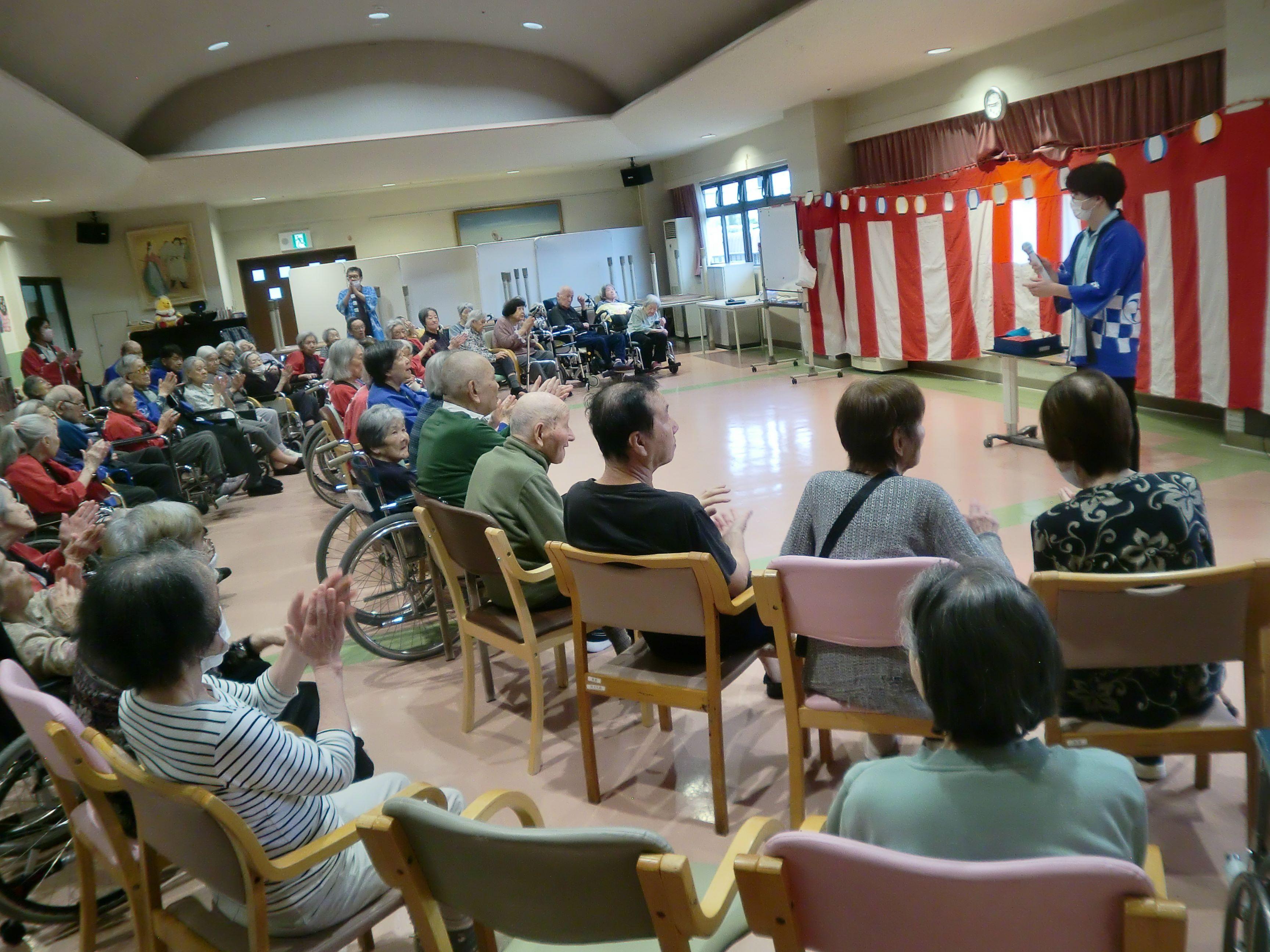 秋を感じる味でした。ボランティアの小原さんにマジックショーをして頂き、利用者さんは笑顔で拍手をして、とても楽しそうでした。久しぶりにみんなで集まって、笑い合う時間を持つことができ、