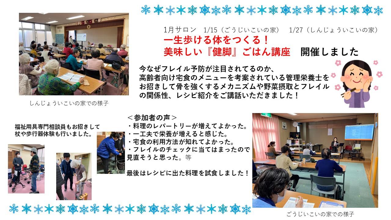 地域包括支援センターこだなかでは1月にフレイル予防、特に食事の面に関して管理栄養士による講話を頂きました。