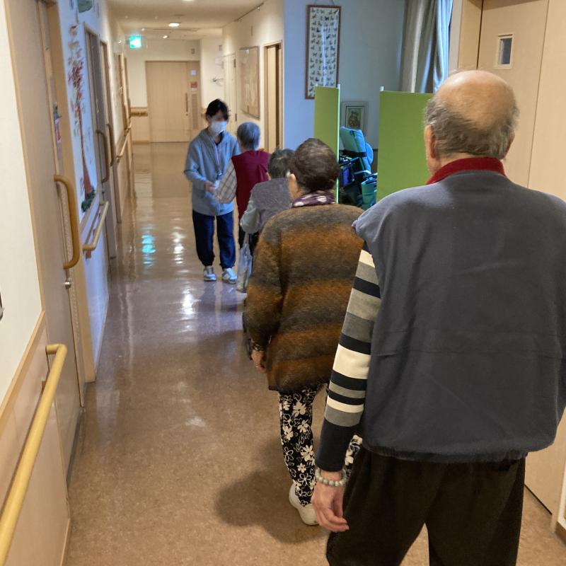 本日15:00~『みんなでウォーキング』と題し、ユニット内をみんなで散歩