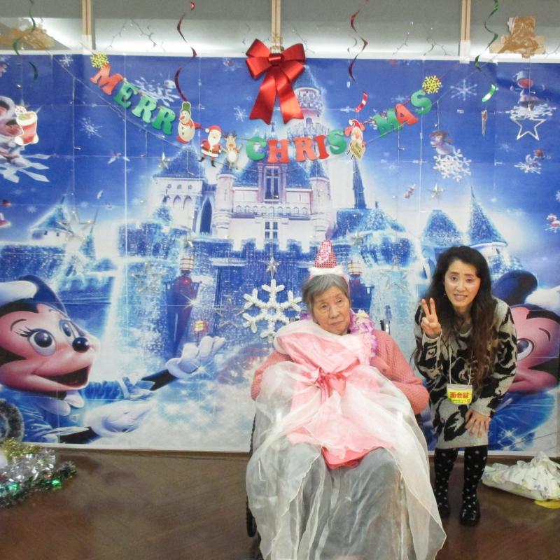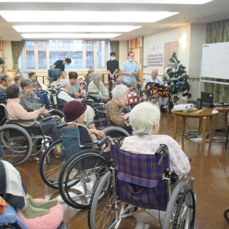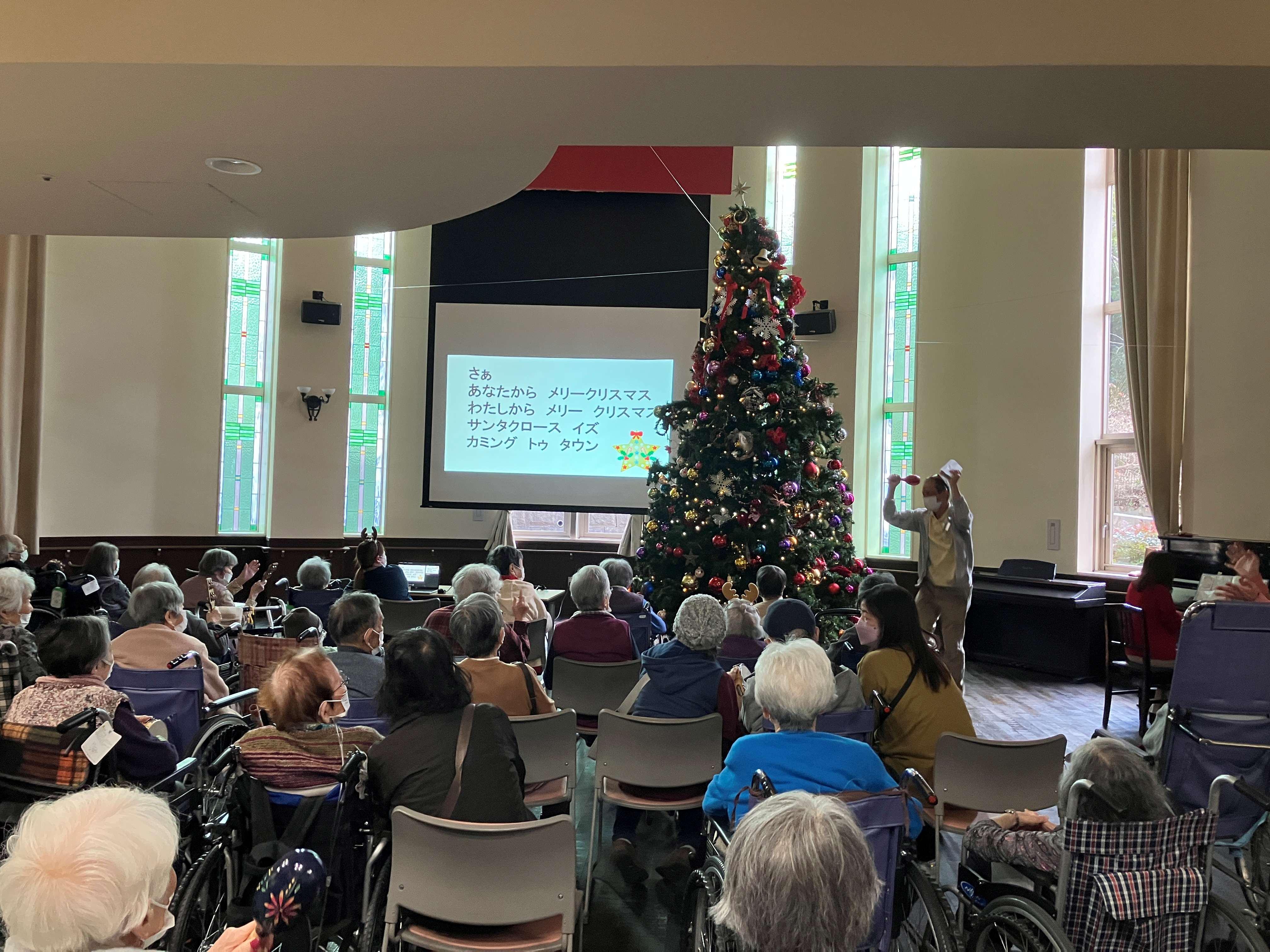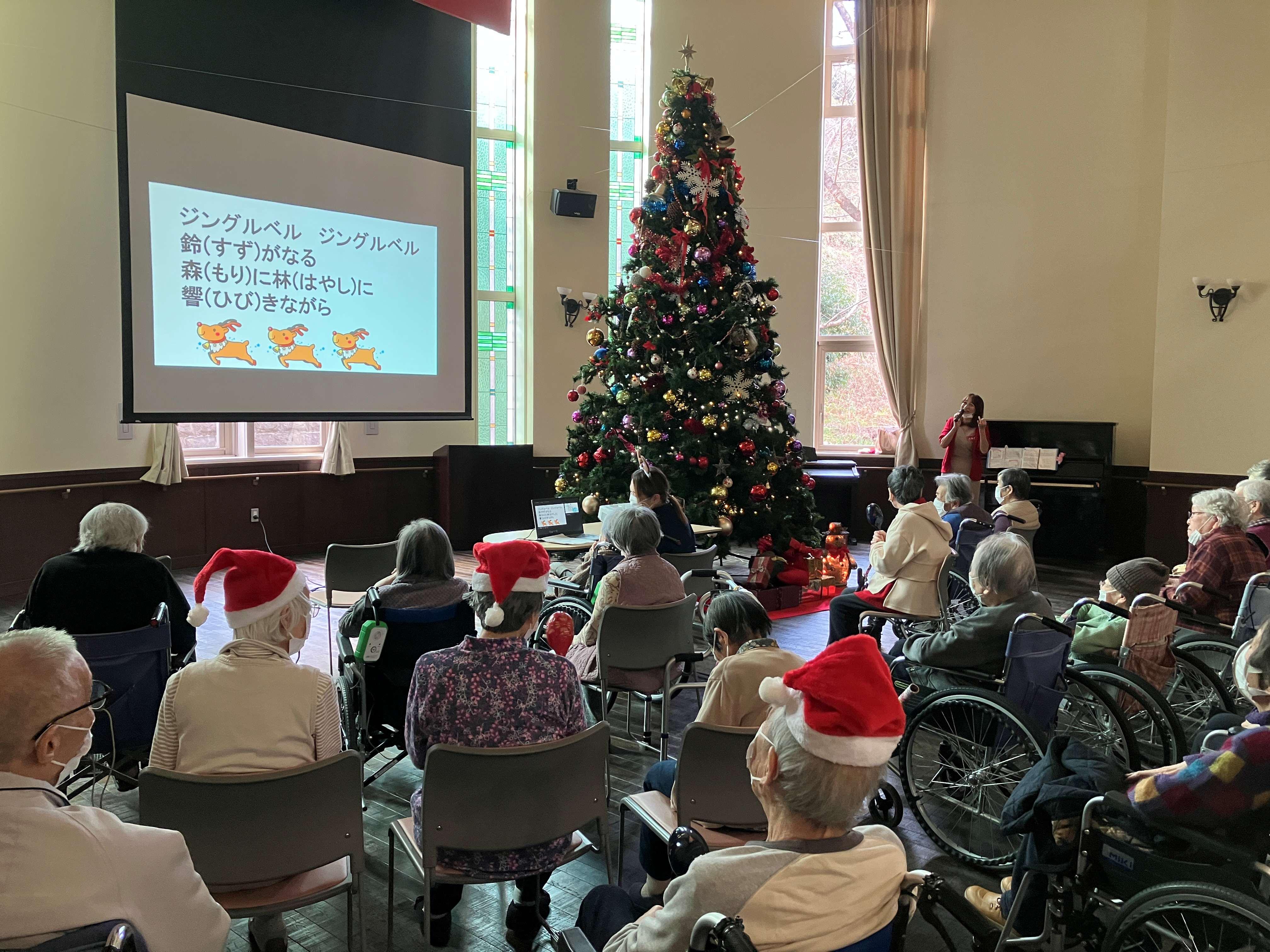 大きなクリスマスケーキを目の前にして、皆さん大変喜ばれていました。