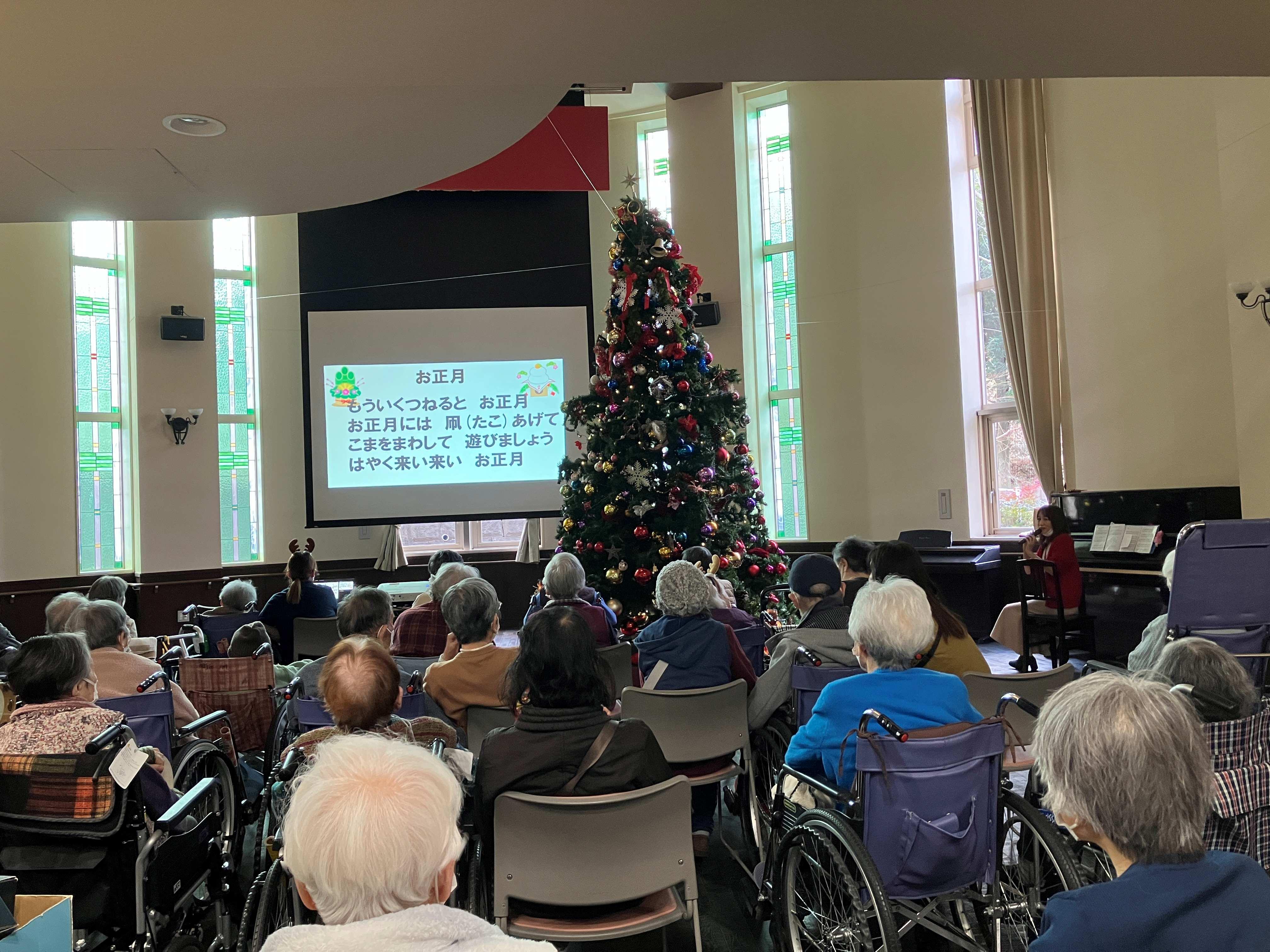 リスエストがあった、ふるさとやあめふりの歌も歌い、ピアノの音色に合わせて、皆さんの歌が響きました