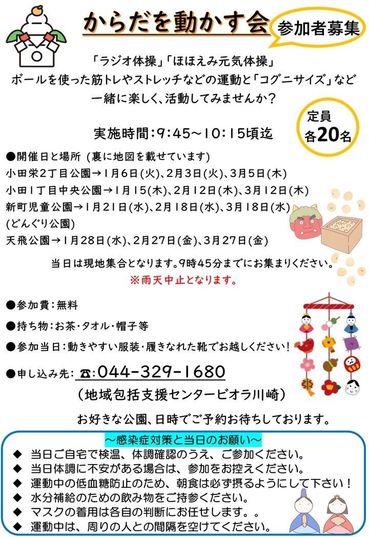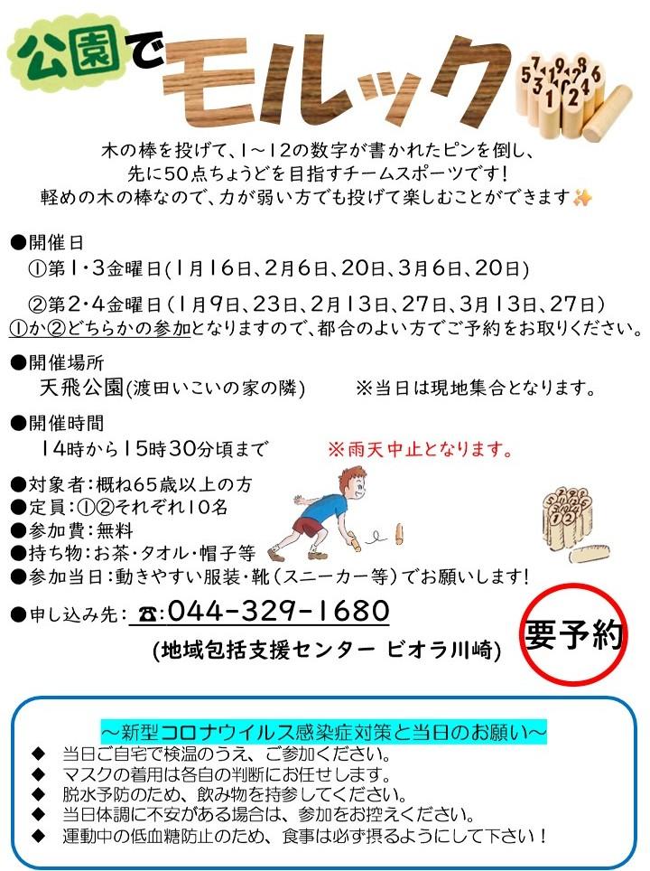 1月~3月の地域活動(からだを動かす会、公園でモルック、ビオラ喫茶)のご案内です