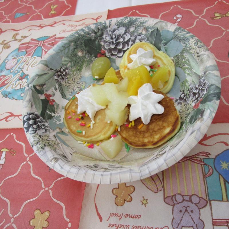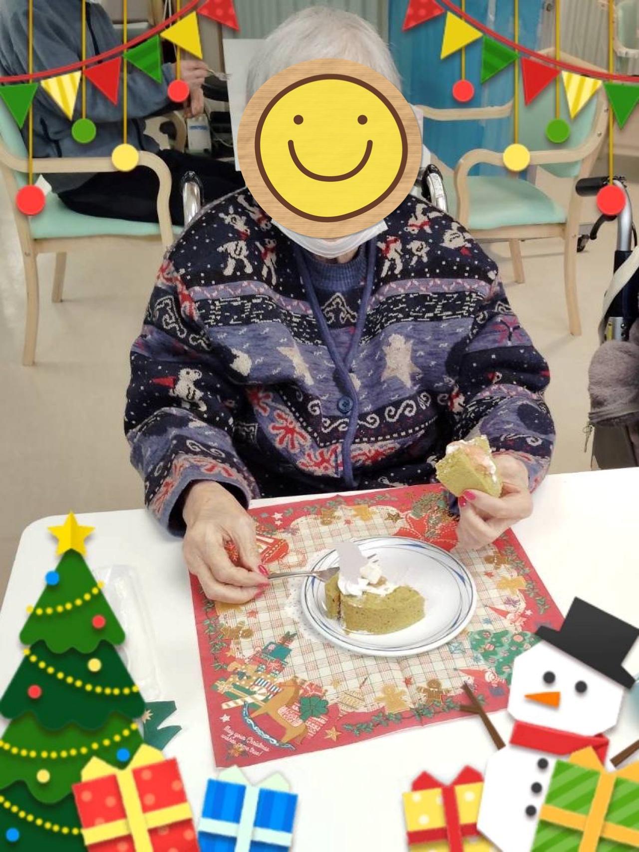 「美味しい!」「メリークリスマス!」と楽しみながらおやつを召し上がっていただくことができました!