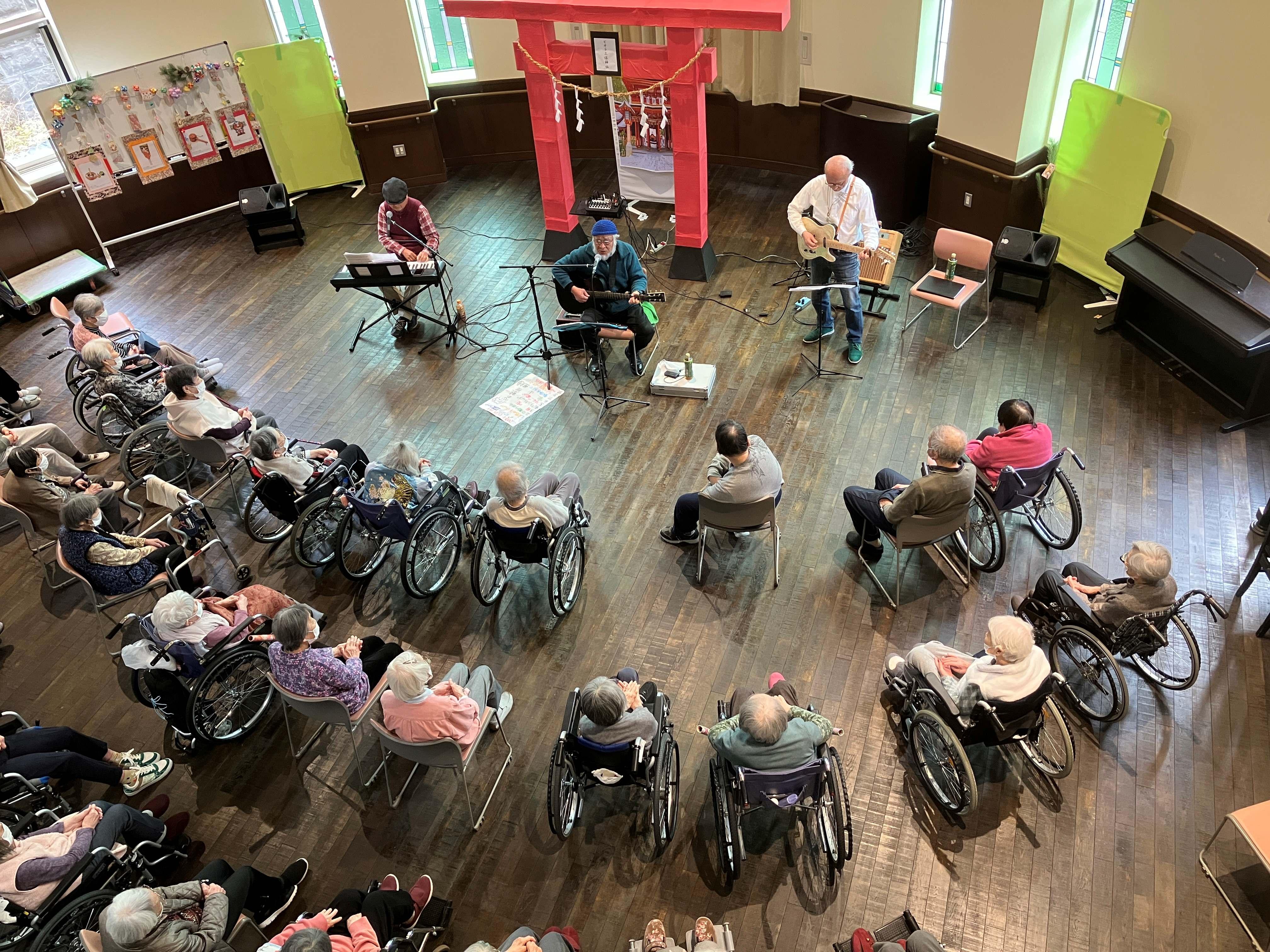 ボランティアさんによるバンド演奏が交流ホールで行われました
