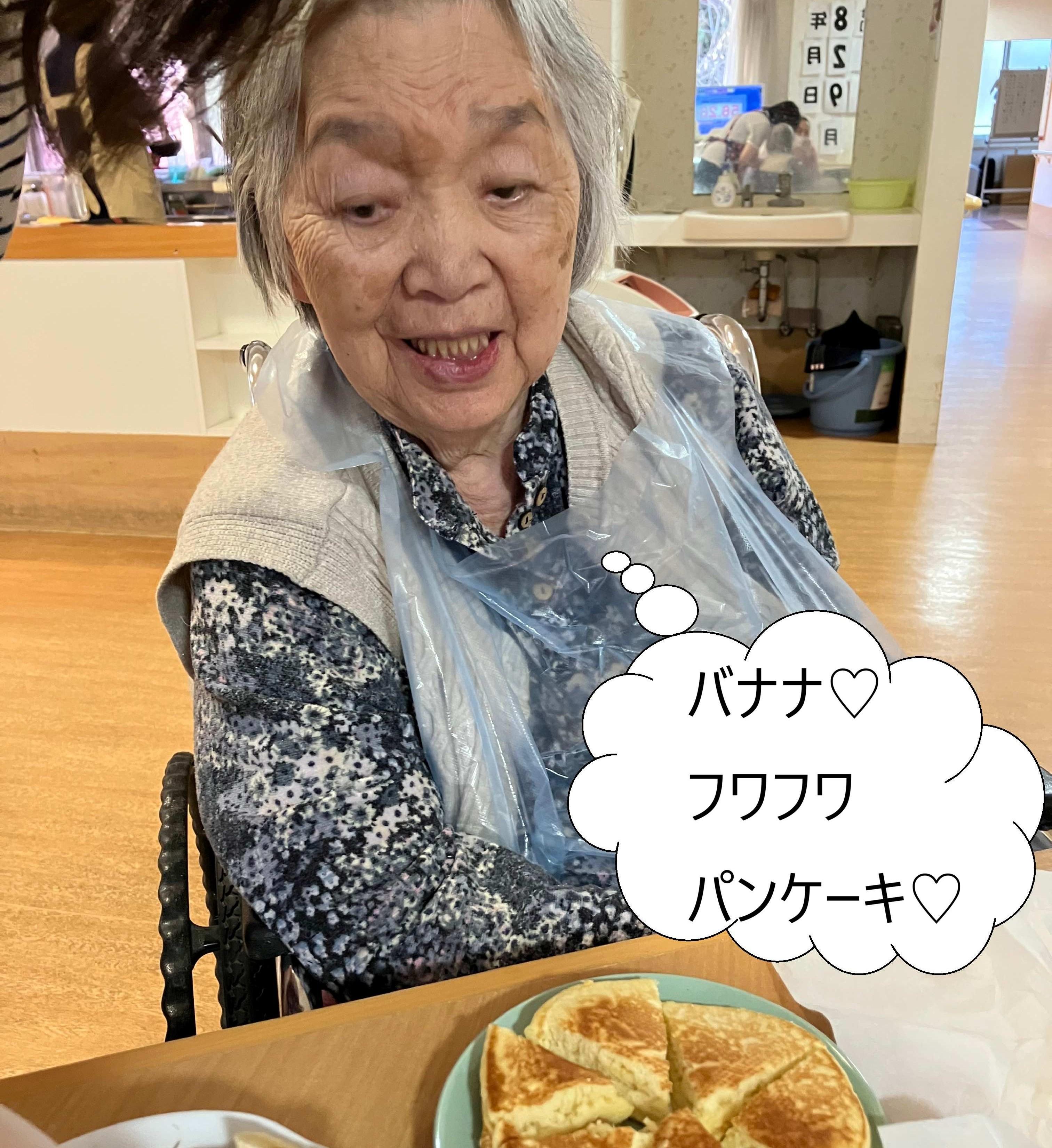 クリームやバナナなどお好きなものをトッピングして!ふわふわパンケーキおいしい!!と召し上がっていました