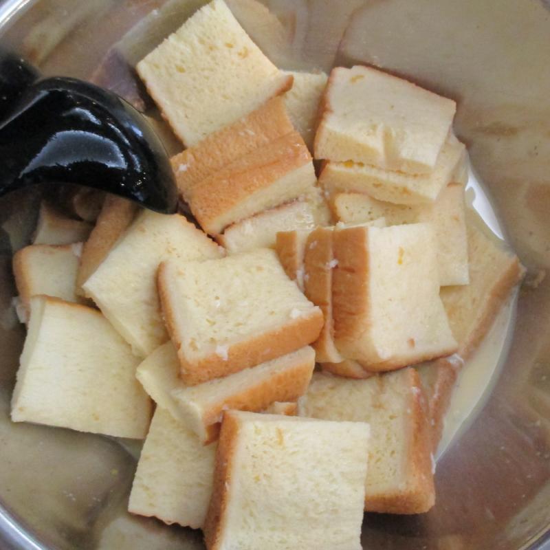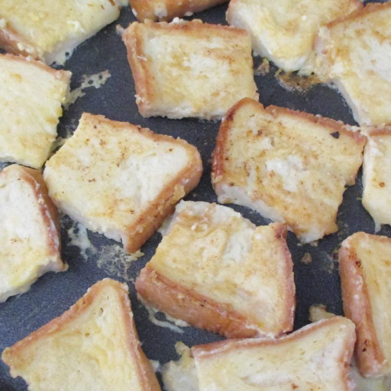 カットした食パンを卵と牛乳と砂糖を合わせた液に浸し、ホットプレートで焼く・・・