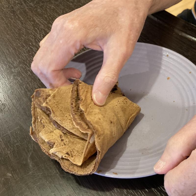 2階は、おやつに『チョコクレープ』を作りました。