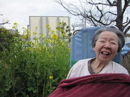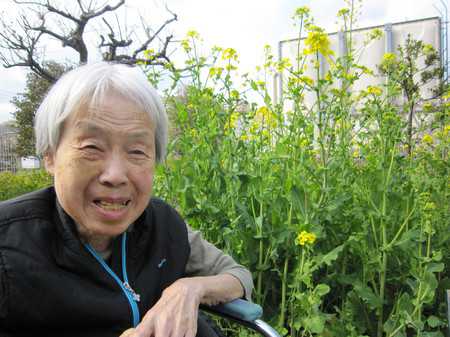 桜にはまだ早いですが、畑に咲いた菜の花でお花見をしました。