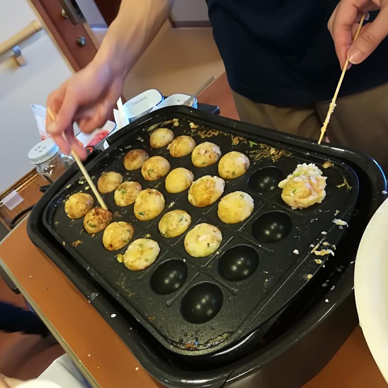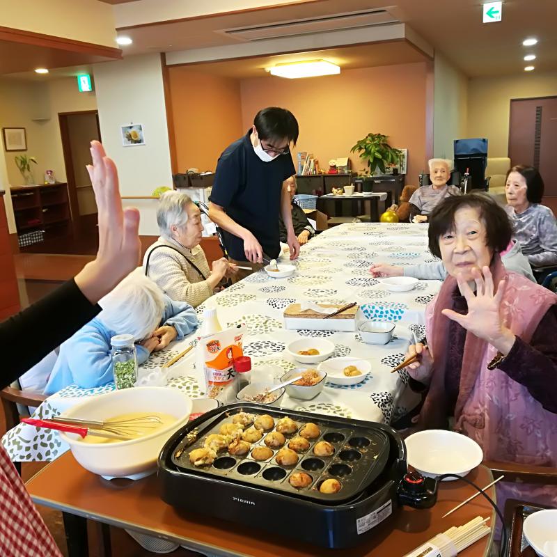 3階Aユニットにて、関西出身の職員が皆さまの目の前でたこ焼きを焼きました。