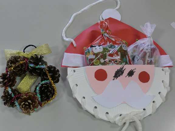 12月の「クリスマスを楽しもう」では、簡単な工作をしたり、サンタがやってきたり...。