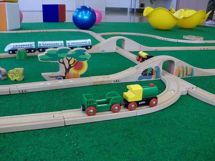 次回2月28日(木)も自由遊び。木の電車のおもちゃやコンビカーなどで遊べます。
