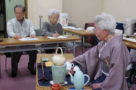 講師としてお呼びしたのは、普段はこだなかサロンに参加していただいている参加者の方なのですが、煎茶道の家元としても活動していらっしゃった90歳の方です。サロンでも煎茶道を披露していただきたいとご依頼し、開催しました。道具も本格的にご用意して下さり、最後には盛大な拍手が沸いて好評のうちに終わりました。