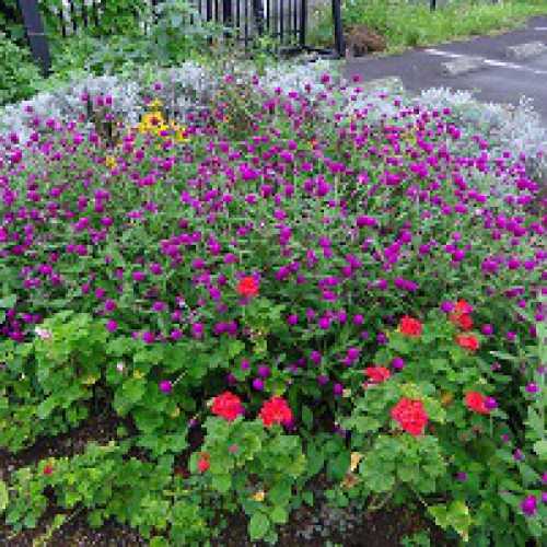 今年は入口花壇の千日紅が見事に咲きそろいました。ご家族様のご寄付いただいた花だそうです。ありがとうございます。