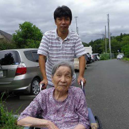 きょろきょろと眺めていたら、スタッフとお散歩をしている入居者様とお会いしました。