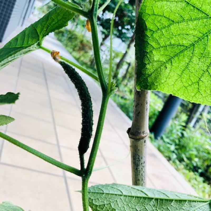 きゅうりは弦の長さがだいぶ出てきて実もちらほらと・・・