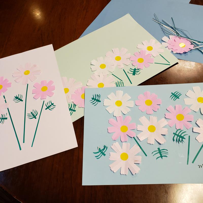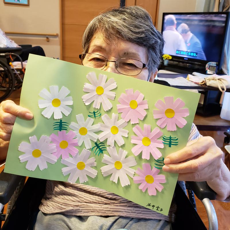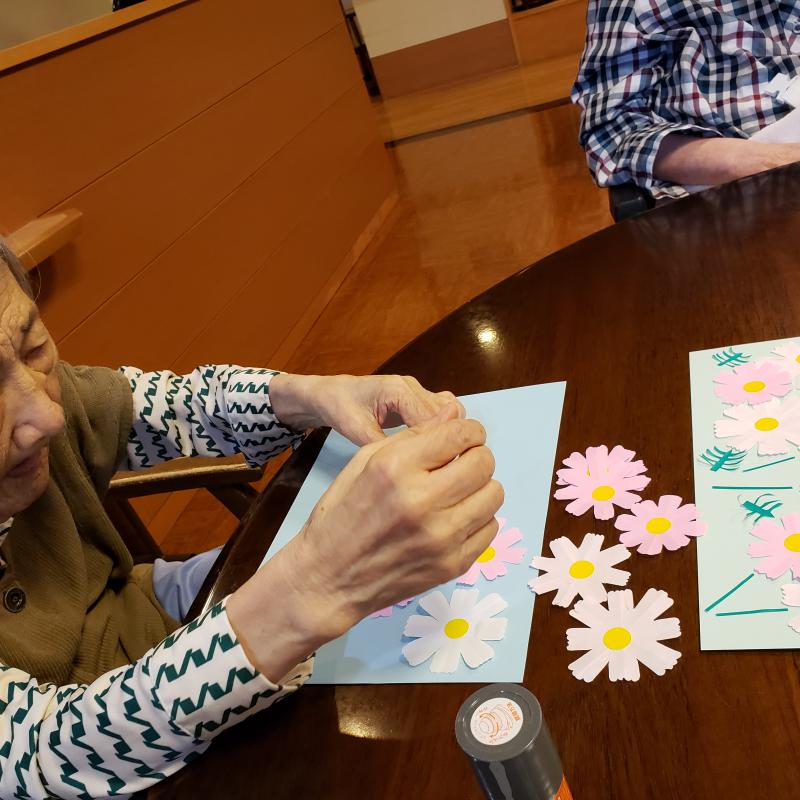 秋の貼り絵ということで今回は“コスモス”です。