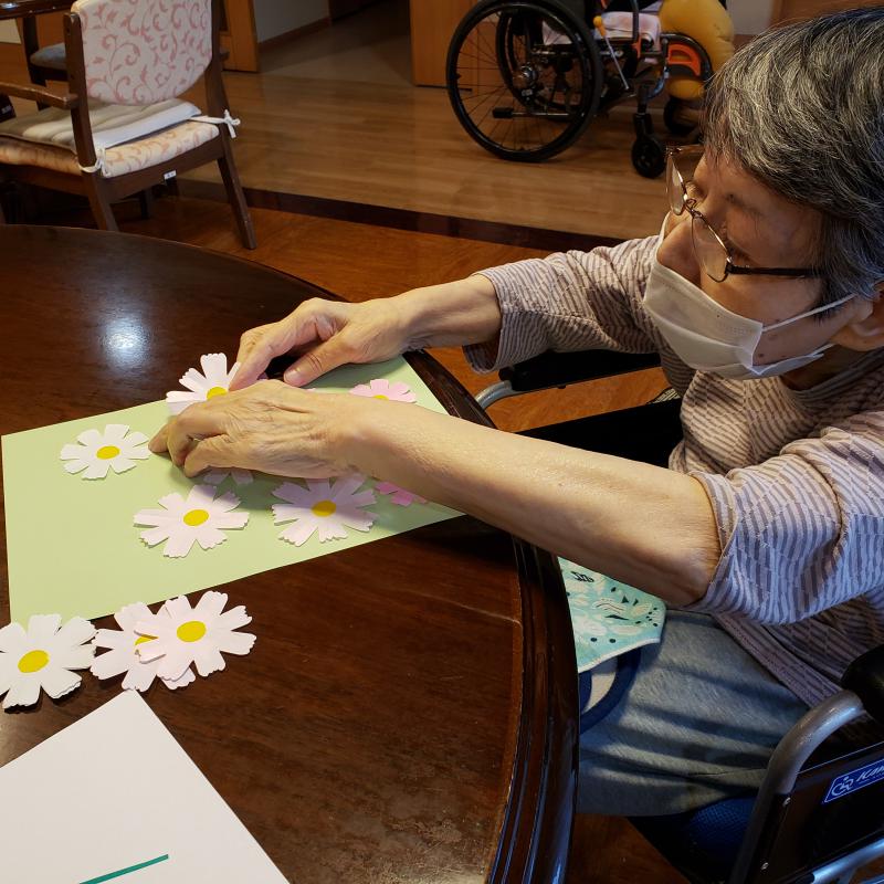 まずは台紙の色を選んでいただき、お花を貼りました。