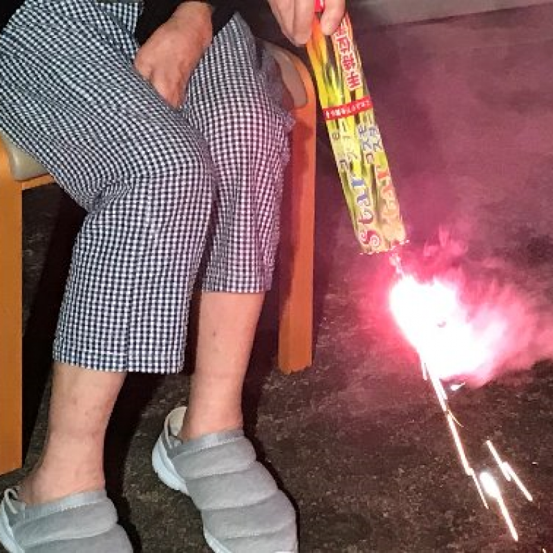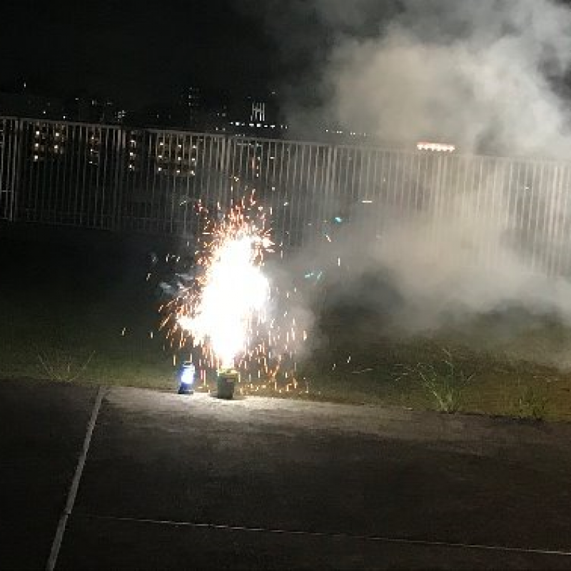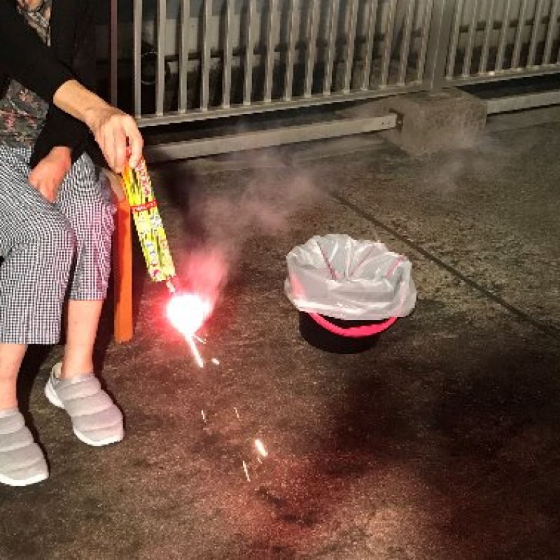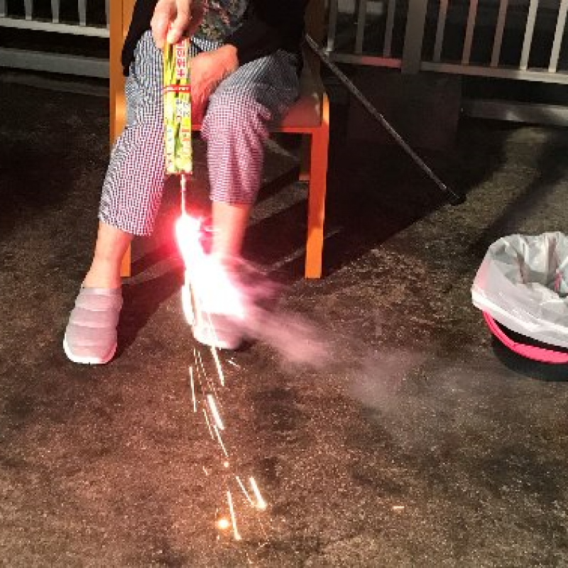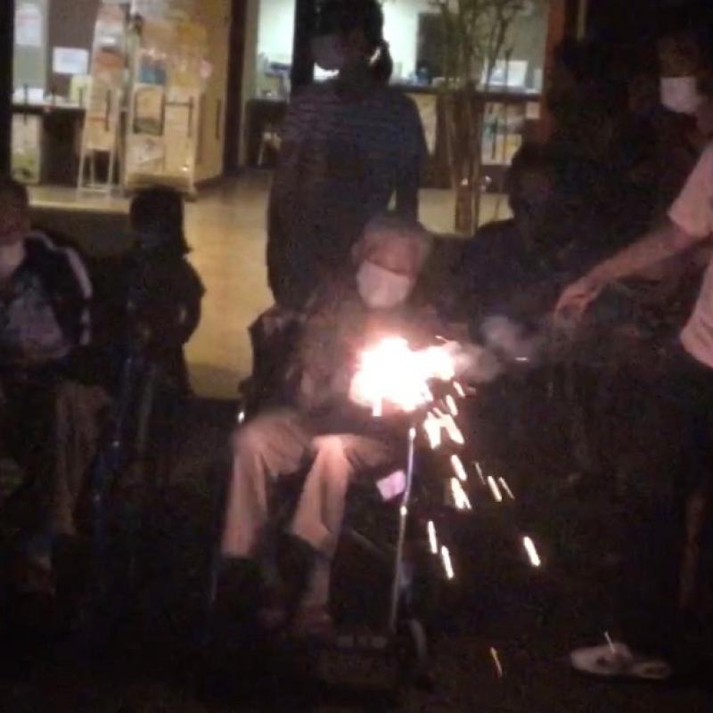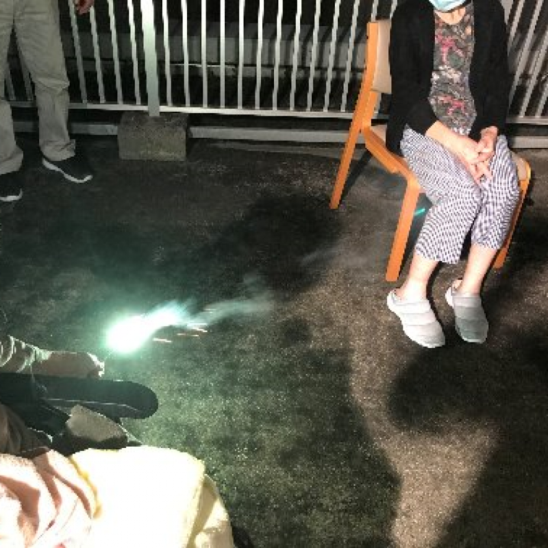 今年は花火大会も軒並み中止のた、せめてものとの思いからユニットでイベントを企画し、屋上にて手持ち花火や噴出花火などを楽しんでいただきました
