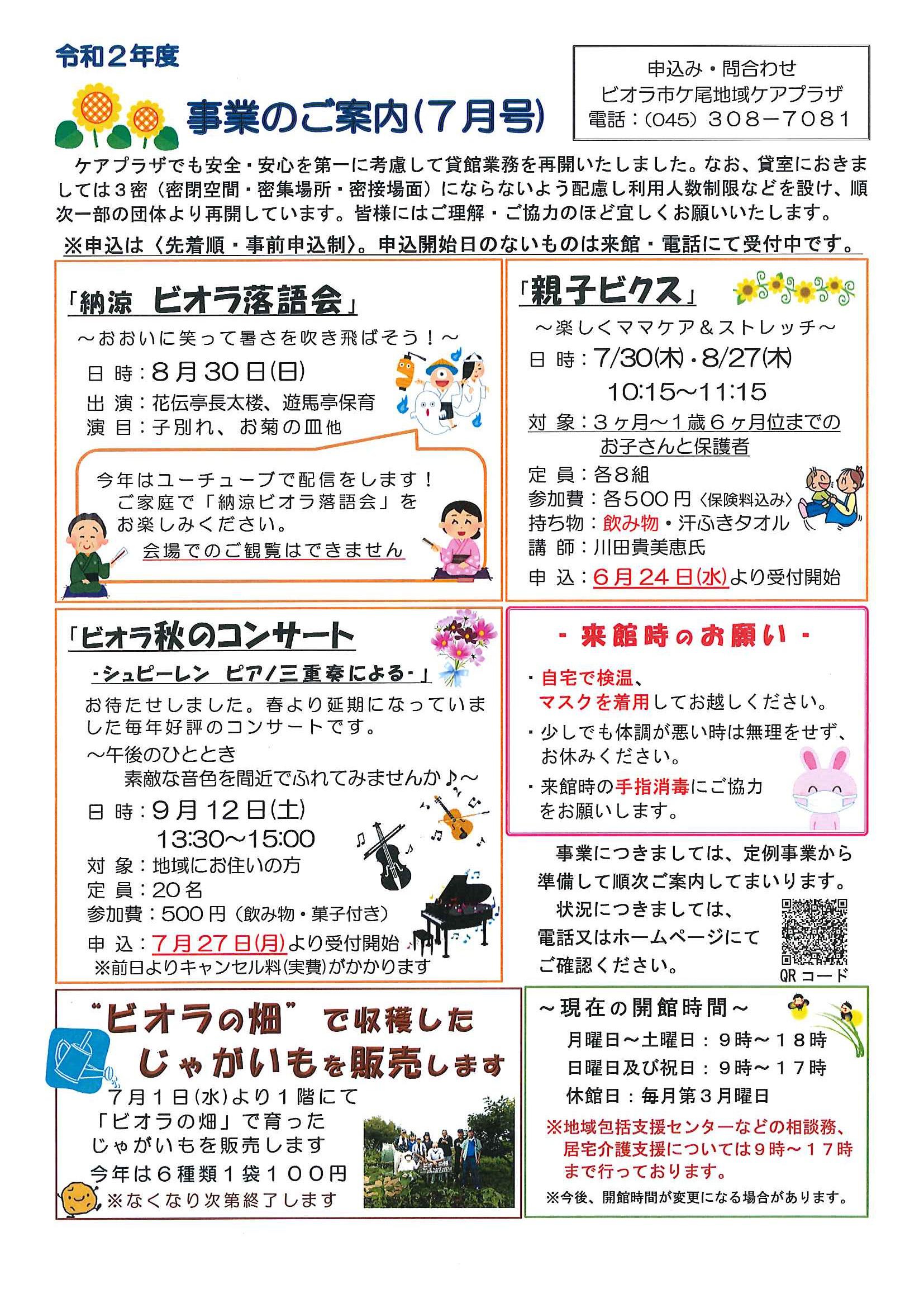 6.加賀原地域ケアプラザの自主事業の開催についてはお問い合わせください。