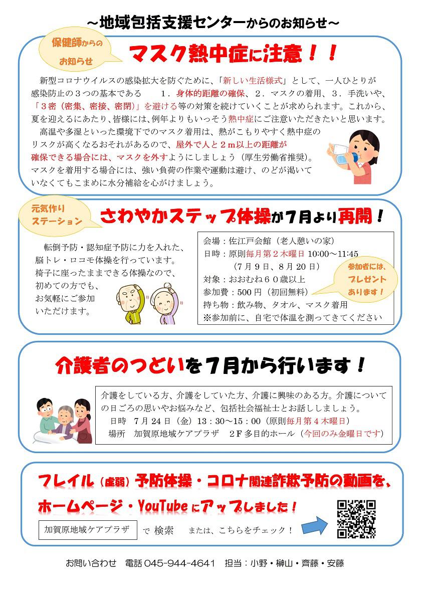 日頃、加賀原地域ケアプラザをご利用いただきありがとうございます。