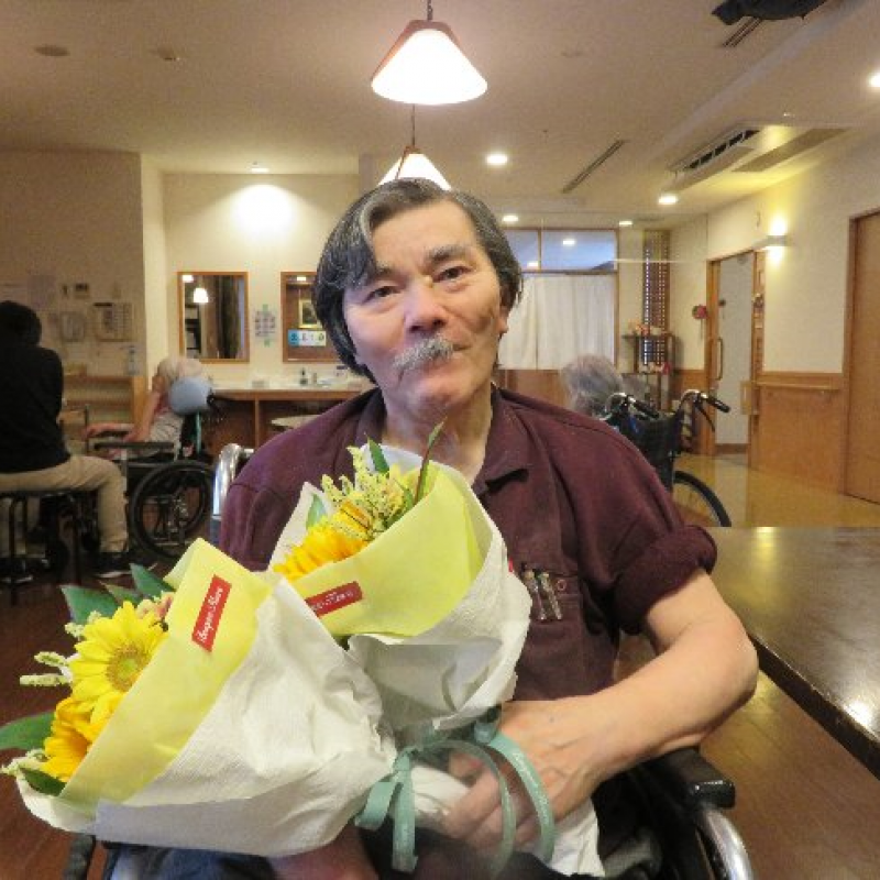 ひまわりの花束が似合うダンディーな父の姿をご覧下さい。
