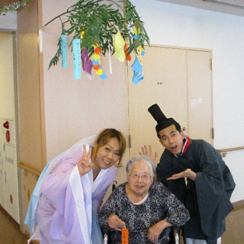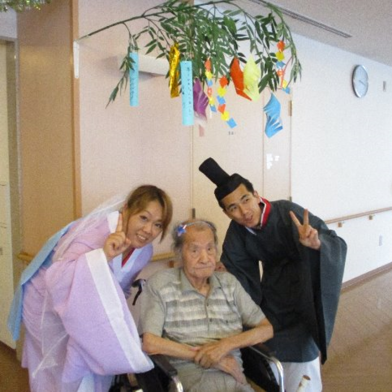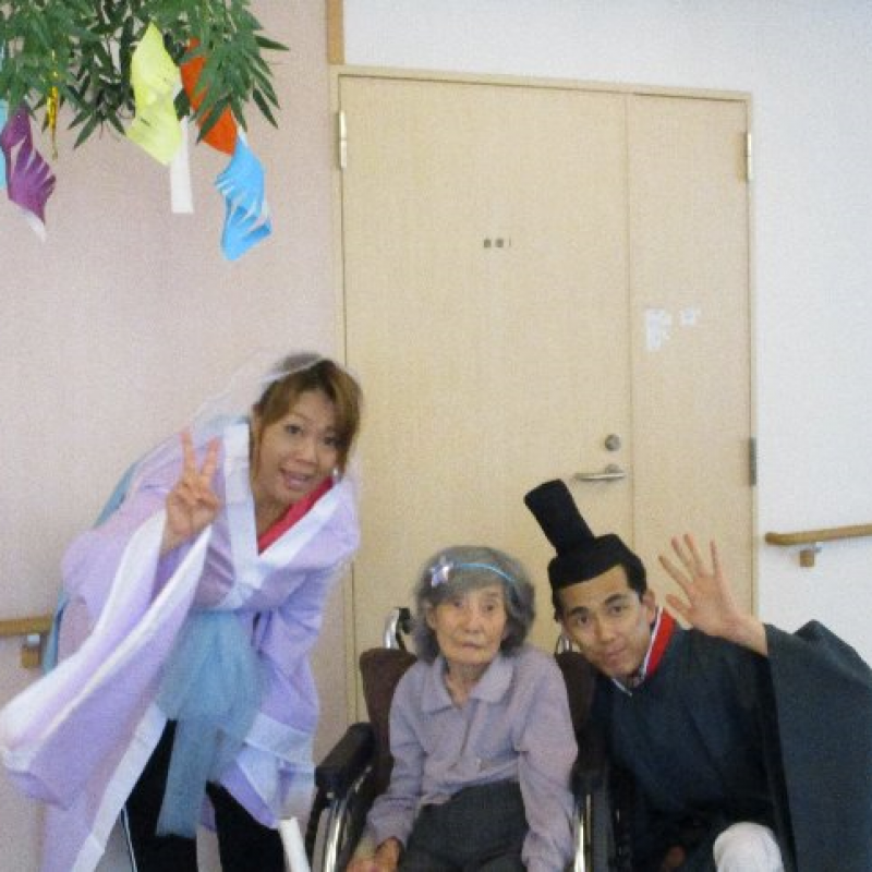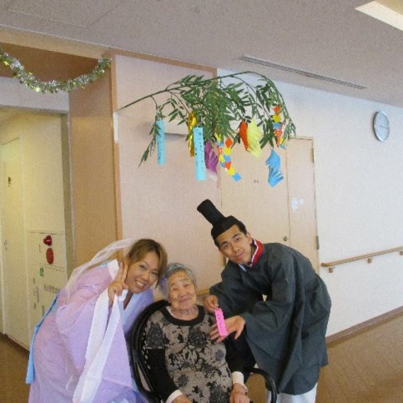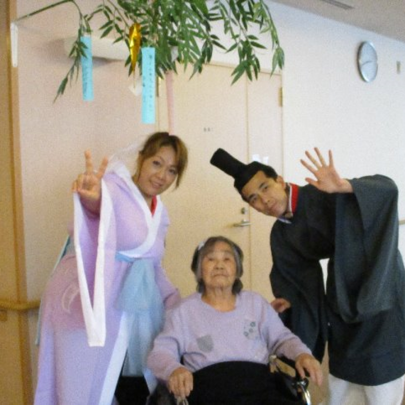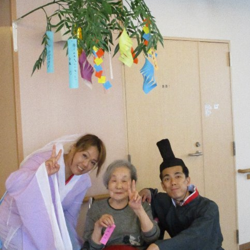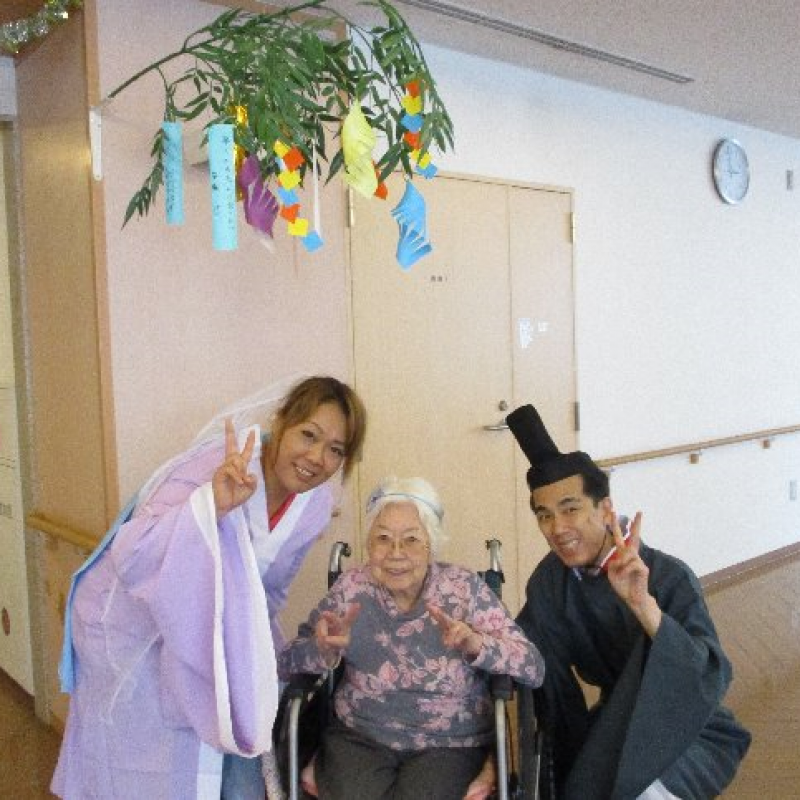 スタッフが『織姫』と『彦星』に仮装し、ご入居者さまと一緒に写真を撮りました。