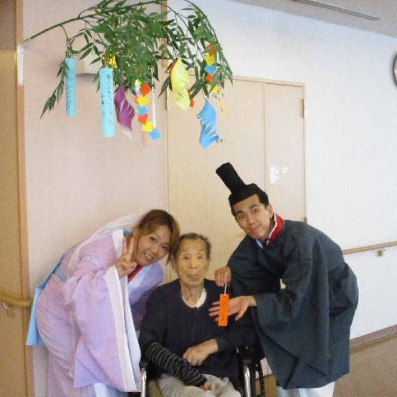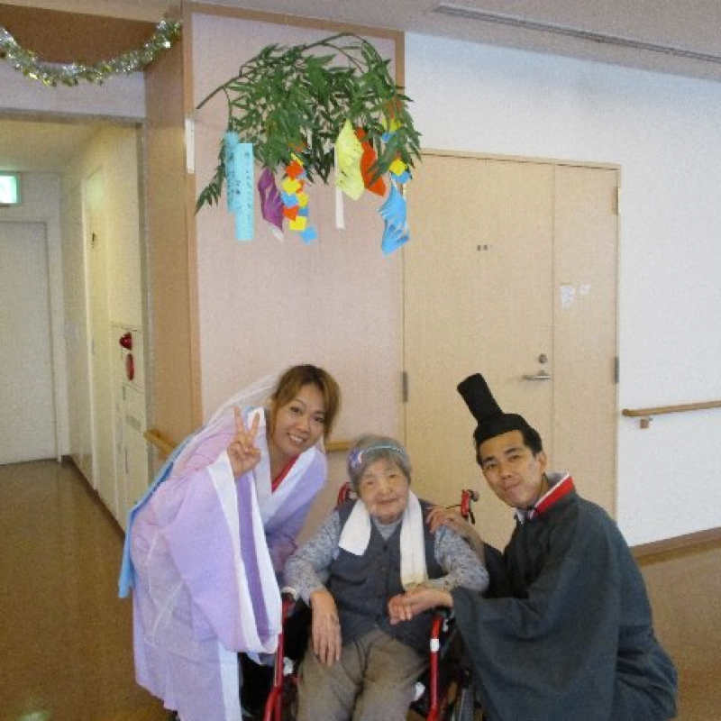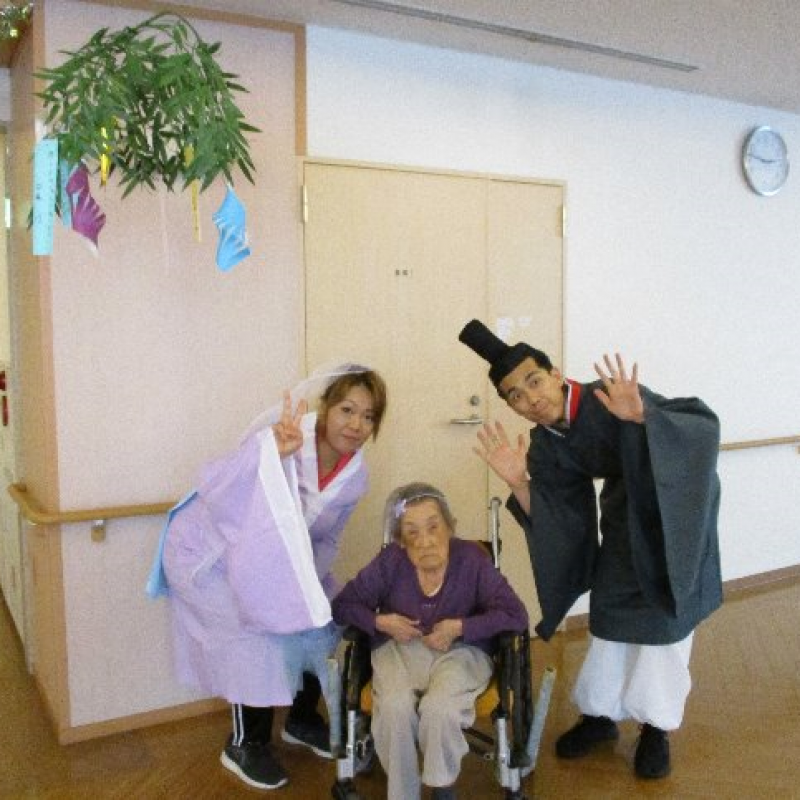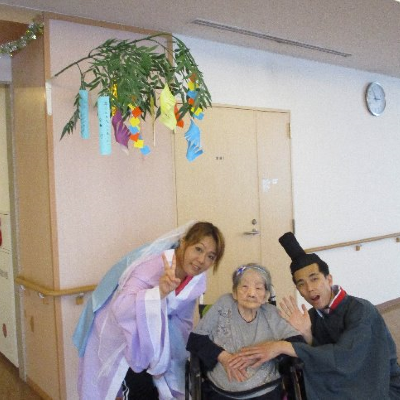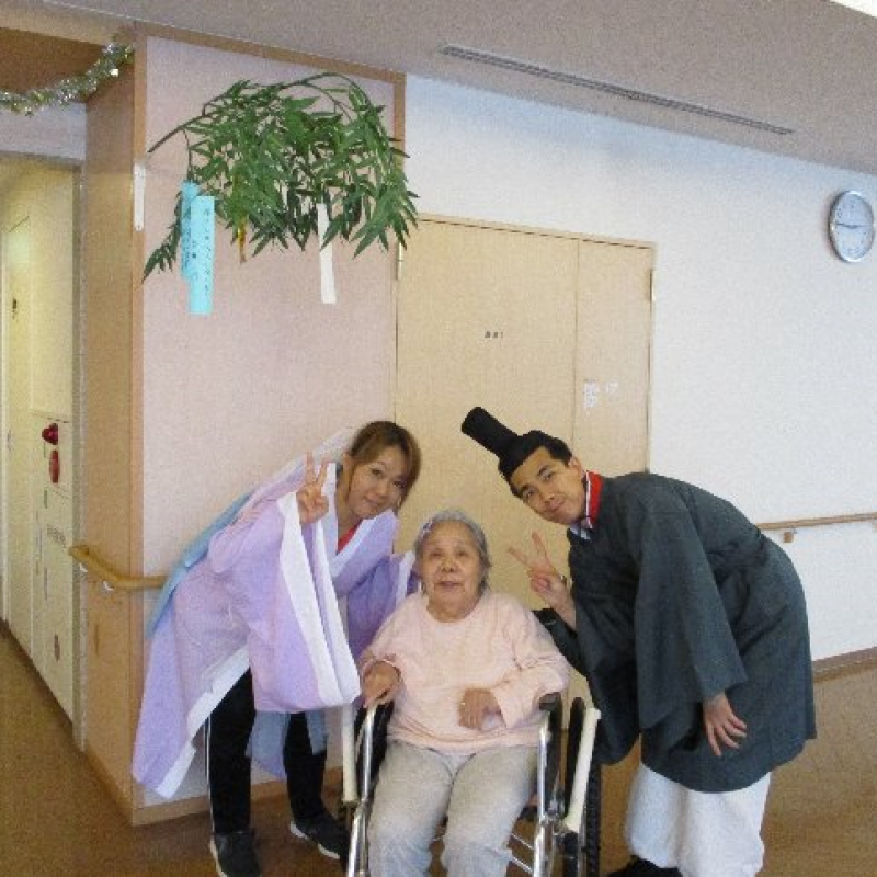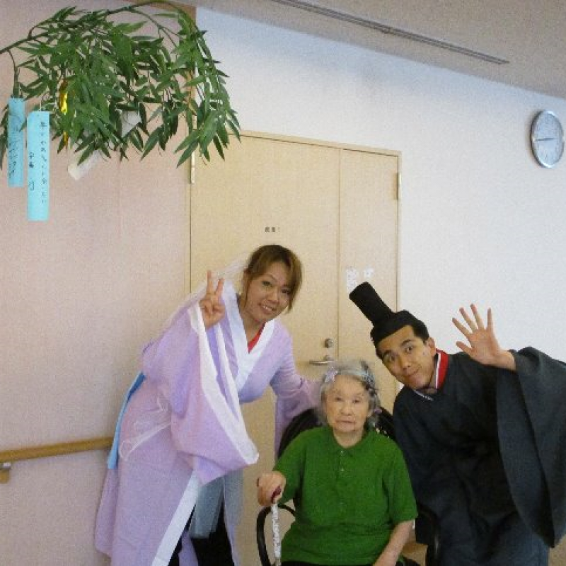 スタッフが『織姫』と『彦星』に仮装し、ご入居者さまと一緒に写真を撮りました。