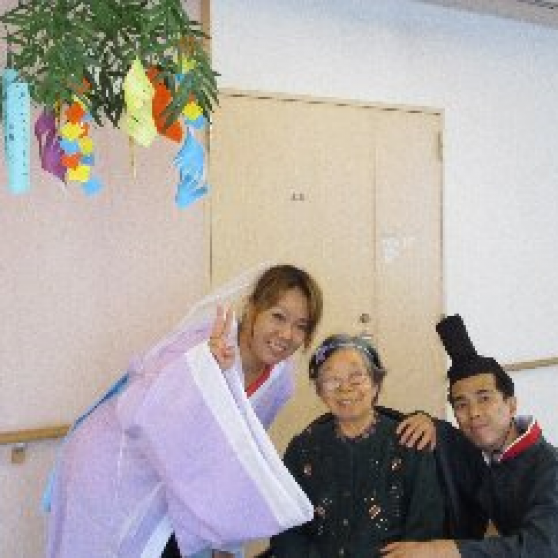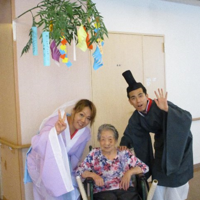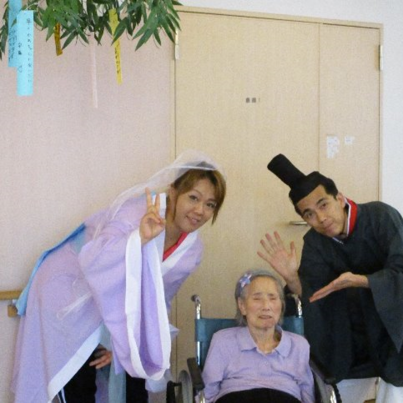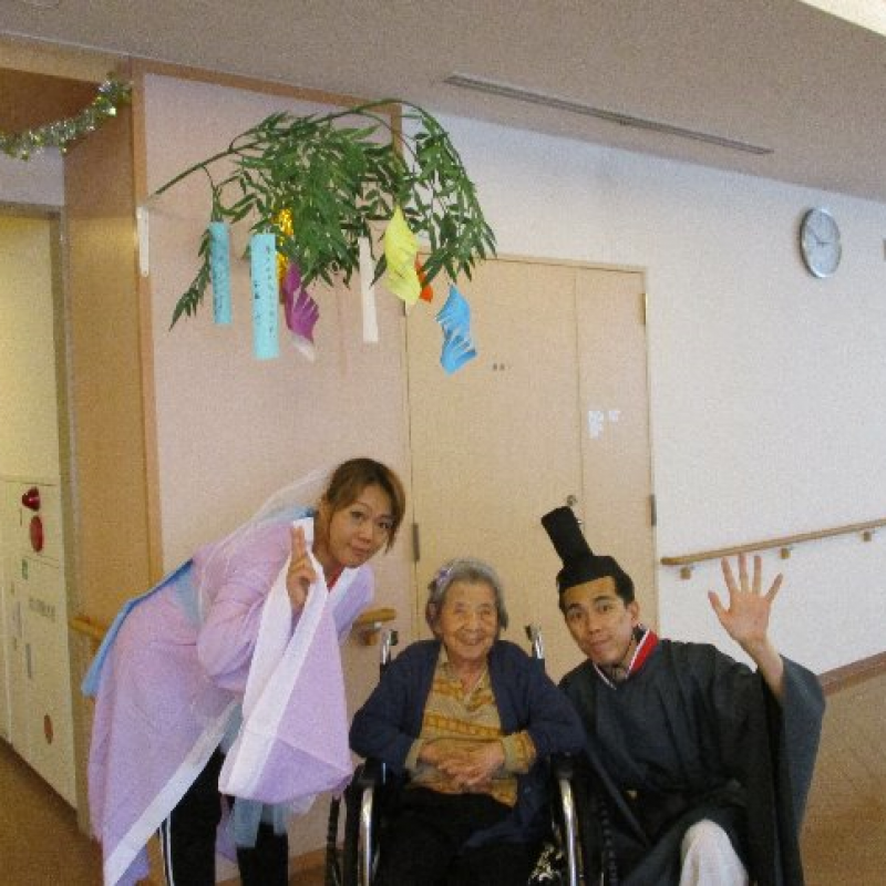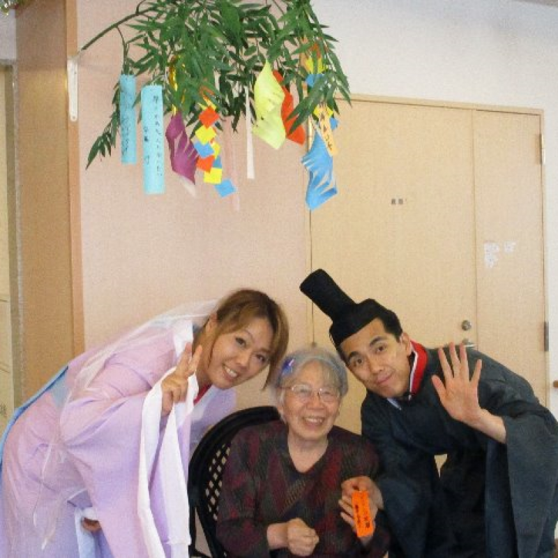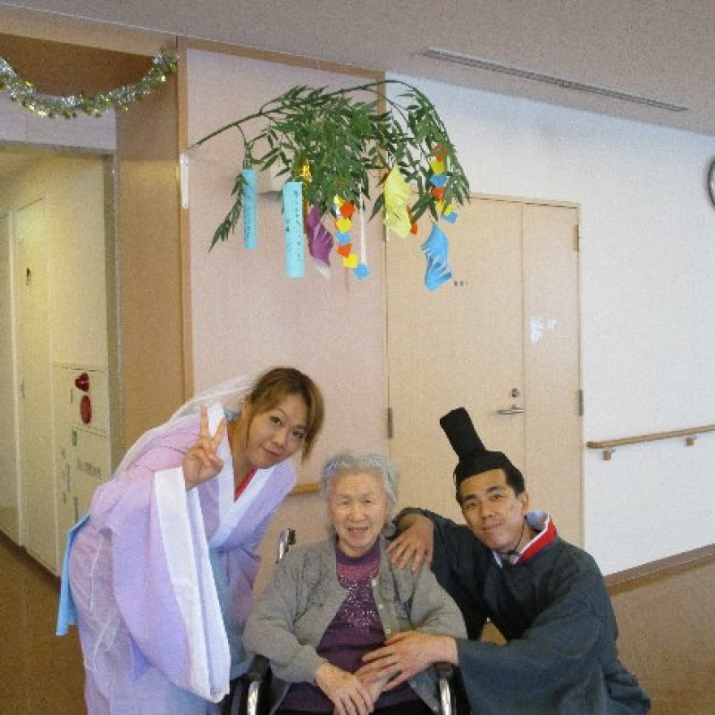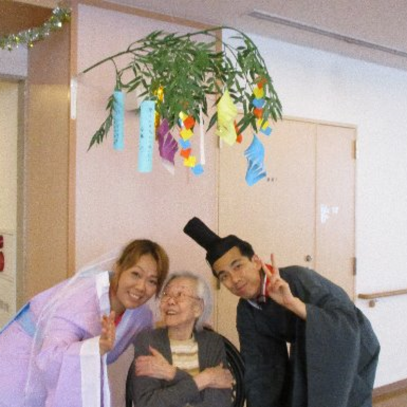 スタッフが『織姫』と『彦星』に仮装し、ご入居者さまと一緒に写真を撮りました。