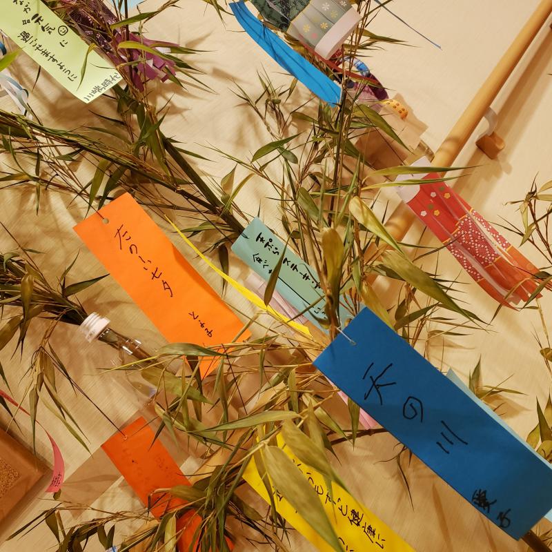 エレベーター横に設置した笹には、願い事が書かれた短冊で一杯になりました。