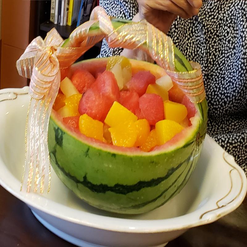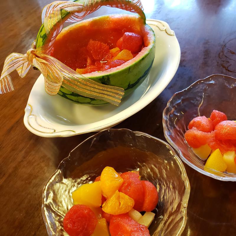 スイカの皮を器にスイカデコレーションを作成。