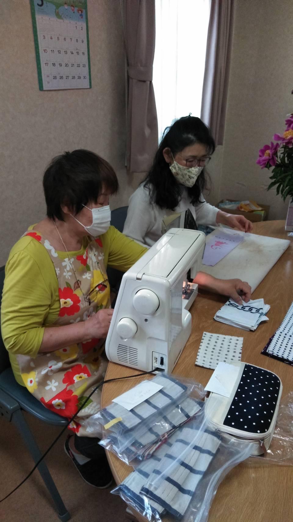 地域の皆様から寄付していただいた布で、マスクを手作りで作成しました。