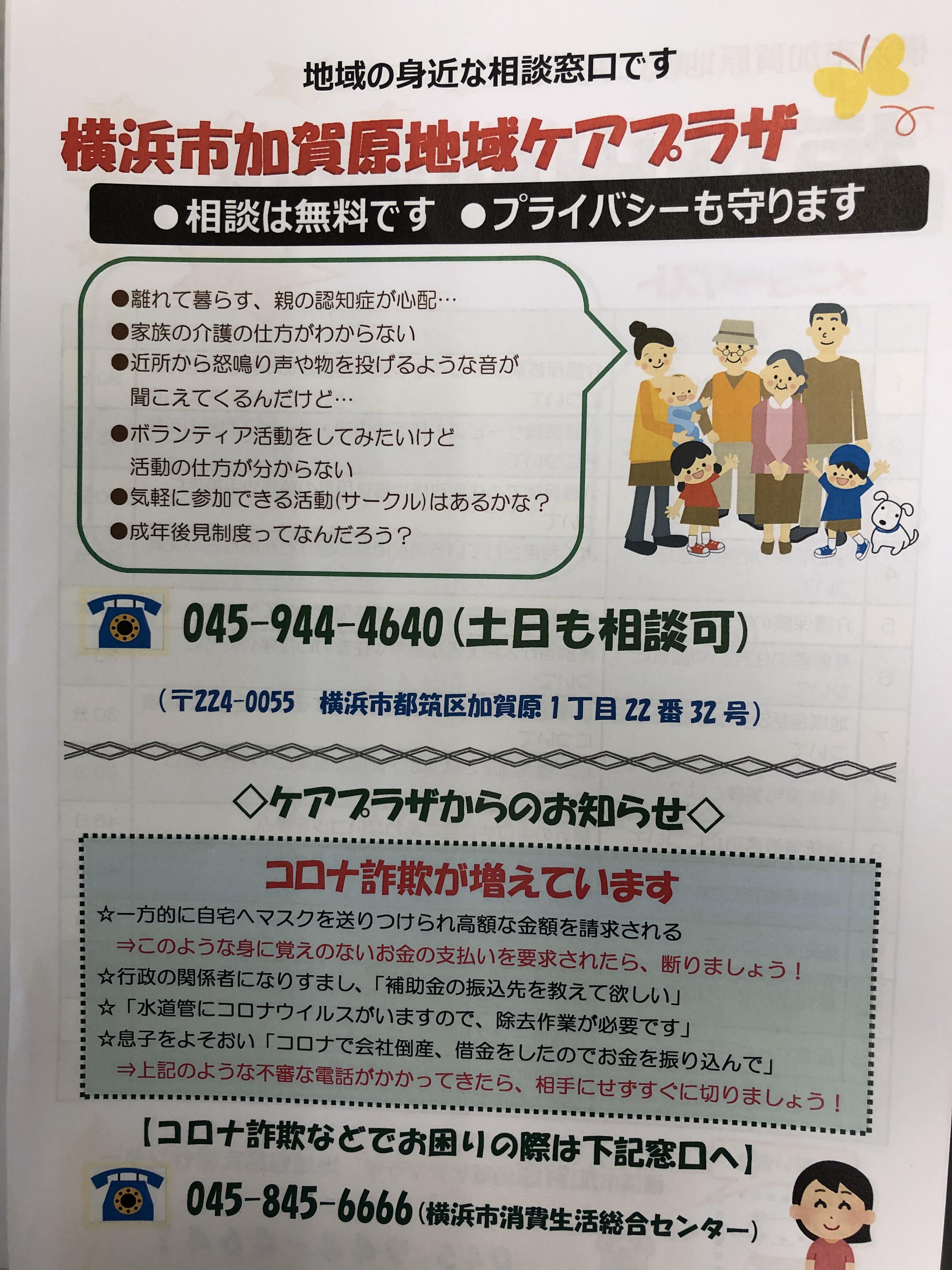 それと、加賀原地域ケアプラザでコロナ詐欺についてのチラシを作成しました!