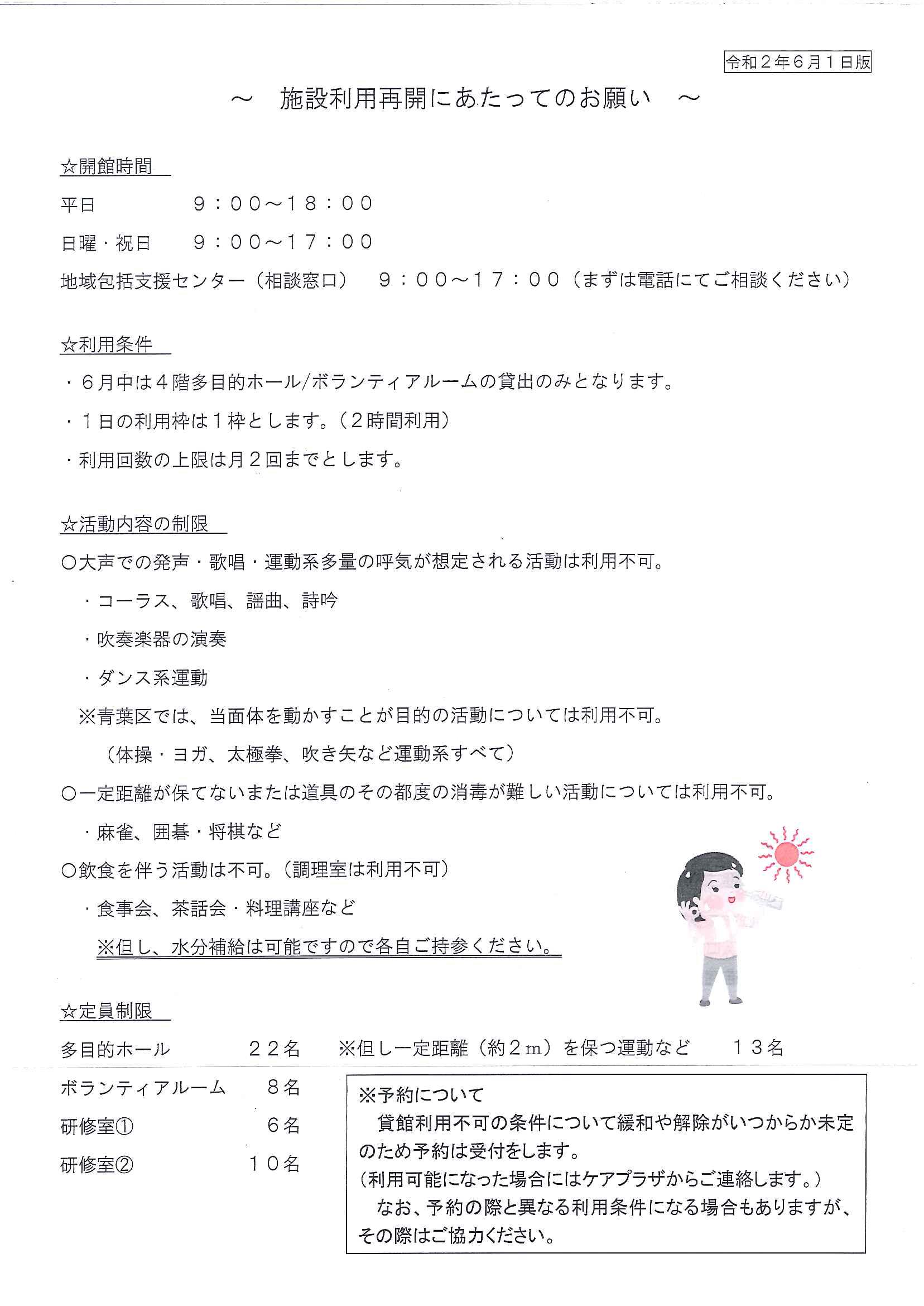 6月1日(月)より施設貸出を一部再開いたします。
