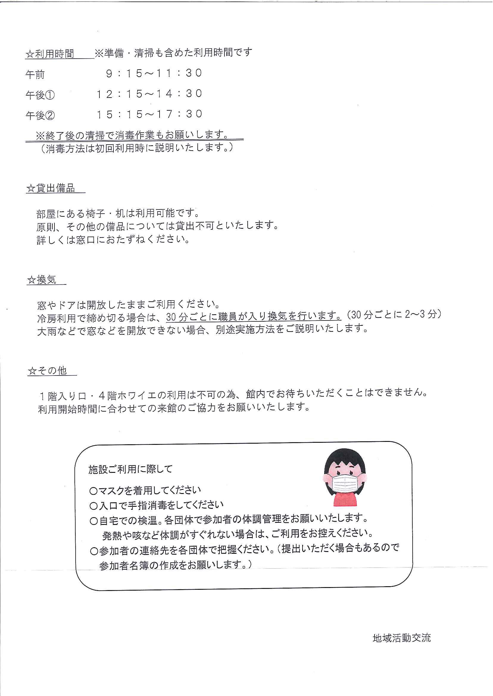 加賀原地域ケアプラザでは、現在も引き続き貸館の利用は中止中です。