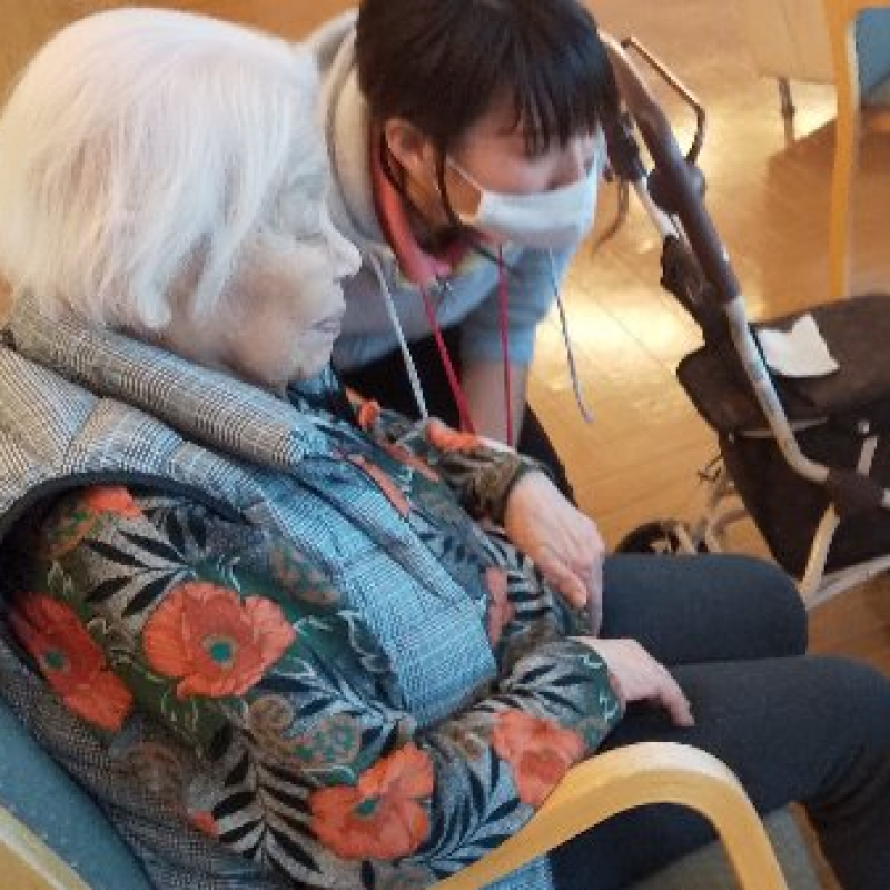 ご入居者さまも笑顔で会話され、お互いにホッとするひと時を過ごされていました。