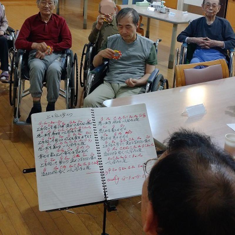 ご利用者様もスズで演奏に参加したり、懐かしい歌謡曲を歌ったりと賑やかな時間となりました